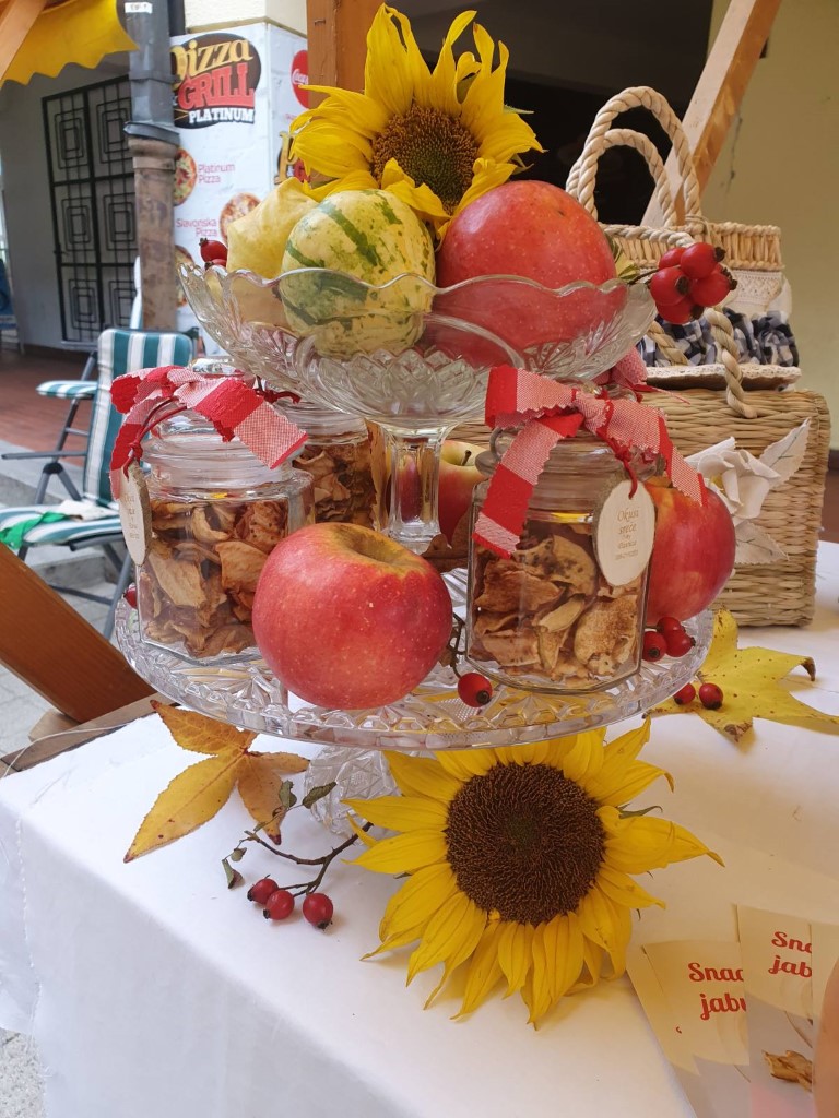 Treći set fotografija je aranžman u kombinaciji s čipsom od jabuka na sajmu antikviteta u Osijeku i sa sajma jeseni u Požegi.
