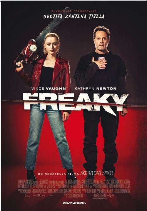 Sadržaj: Zamjena tijela s nekim drugim sigurno nije ugodna. No kada do zamijene dođe između srednjoškolke i nemilosrdnog ubojice ulazimo u područje horora kojim se bavi novi film FREAKY. Scenarist i redatelj Christopher Landon (Happy Death Day) donosi crnohumorni horor film u kojem Vince Vaughn i Kathryn Newton glume ubojicu i žrtvu. Jason Blum se još jednom našao u ulozi producenta. Sedamnaestogodišnja Millie Kessler (Kathryn Newton) pokušava preživjeti sve drame koje donosi srednja škola i nepopularnost u istoj. No kada postane meta nemilosrdnog serijskog ubojice Butcher-a (Vince Vaughn) srednjoškolski i ljubavni problemi padaju u drugi plan. Tokom napada dođe do zamijene tijela između Butchera i Millie. Millie uskoro shvaća da ima samo 24 sata da se vrati u svoje tijelo inače će zauvijek ostati u tijelu Butchera. S druge strane Butcher u tijelu Millie vidi sjajnu priliku da se neopažen približi svojim novim žrtvama u srednjoj školi.