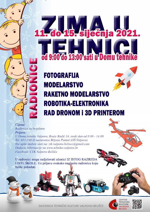 U radionici mogu sudjelovati učenici IZ ISTOG RAZREDA I ISTE ŠKOLE. Učenici se MORAJU prijaviti nastavnici Biljani Pantoš (Valpovo) ili u Dom tehnike Valpovo (ostale škole) telefonom ili mailom. Uz prijavu svakako naglasite radionicu koju želite pohađati.