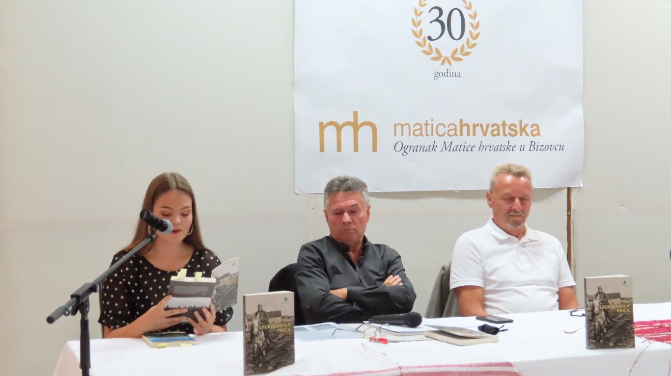 U nastavku je, kao urednik knjiga, predstavio knjigu „Legionarova priča“ Mirka Guljaša iz Našica, nastalu iz autorovih zapisa prisjećanja njegova oca na krvavo sudjelovanje u 2.svjetskom ratu. To je njegov roman prvijenac, a autor se u kratkom obraćanju zahvalio na velikoj pomoći Ogranka i Općine Bizovac u njegovom nastajanju i izdavanju.