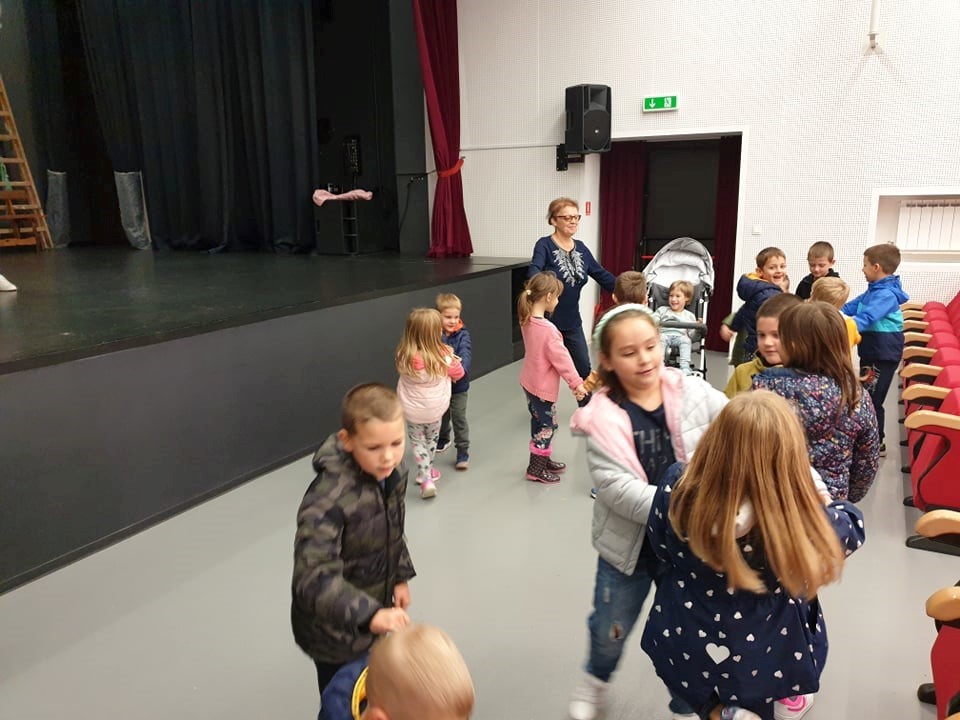 U petak, 8. listopada, prostore Centra za kulturu posjetila je vrtićka skupina Limači iz Dječjeg vrtića “Maslačak” sa svojim odgojiteljicama Sandrom i Brankom. Djeca su u obilasku naučila na koje sve načine izvođači mogu nastupati u kazalištu, kako izgleda kazališna dvorana te kako se pristojno ponašati u kazalištu. Za potpun dojam, djelatnici Centra za kulturu Dominik i Zvonimir rasplesali su djecu veselim pjesmama, a nije izostao ni hit "Kad si sretan".