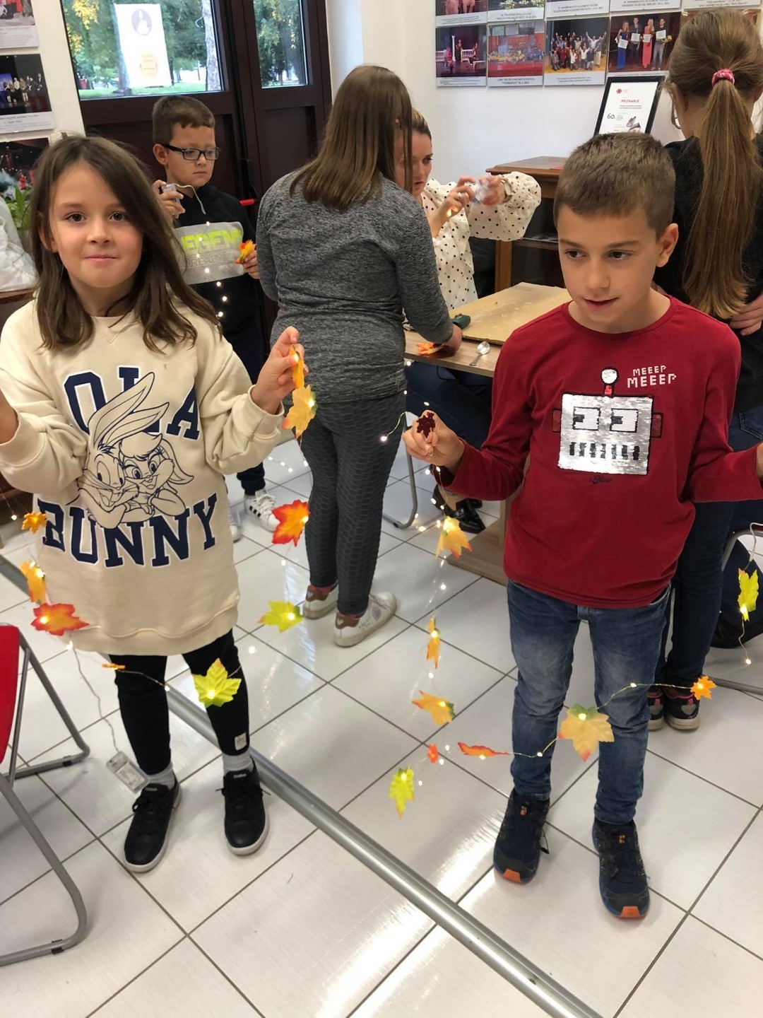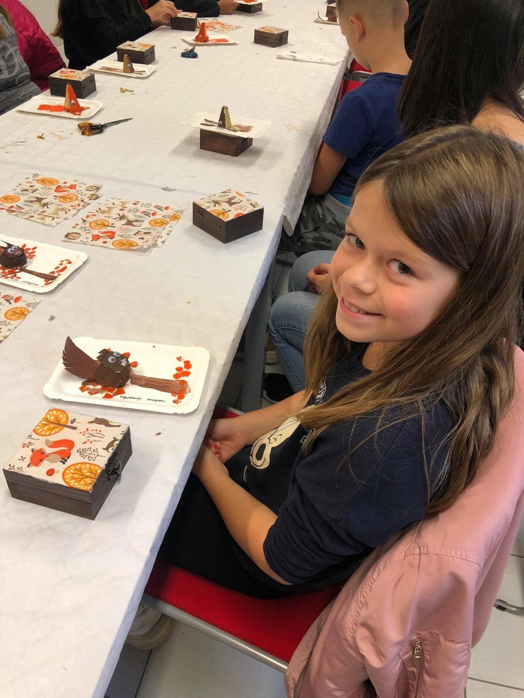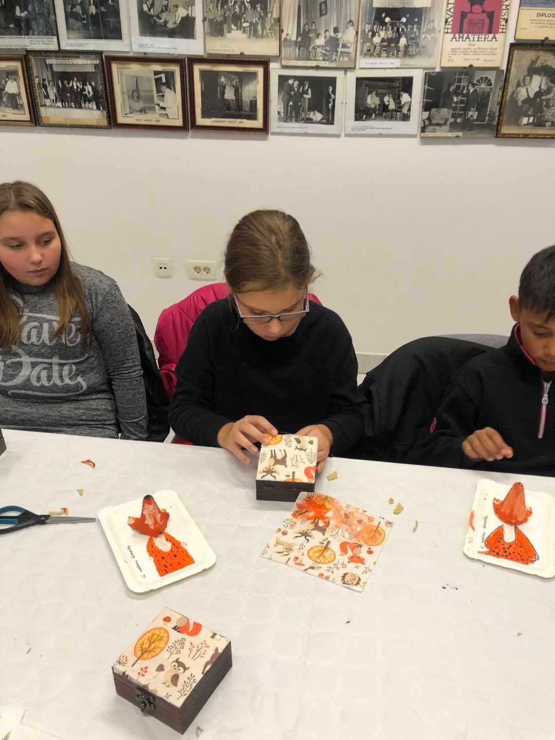 Potom su istog dana u goste došli učenici 3. d razreda OŠ Ivana Kukuljevića Belišće s učiteljicom Karmen Soldo na kreativnu radionicu koju se vodila djelatnica Centra Bojana Reçica. Radionica je bila nastavak odlične suradnje na izradi slikovnice, a učenici su izradili portret šumske životinje od kutija za jaja, rasvjetni lanac ukrasili jesenskim lišćem, a naučili su i decoupage tehniku na drvenim kutijicama.