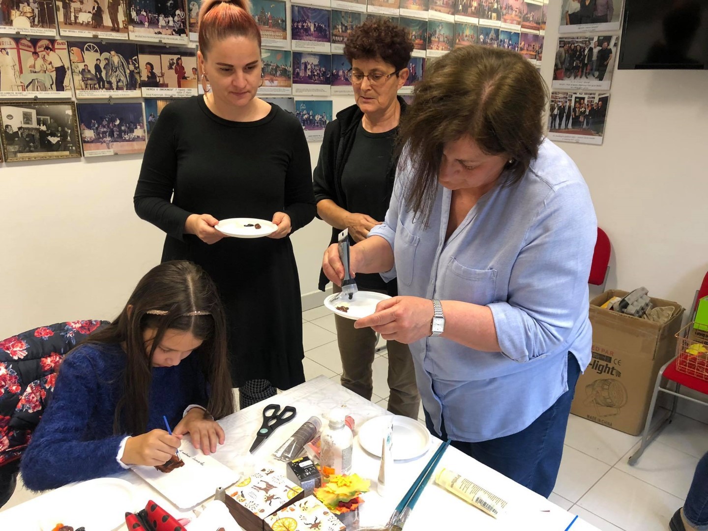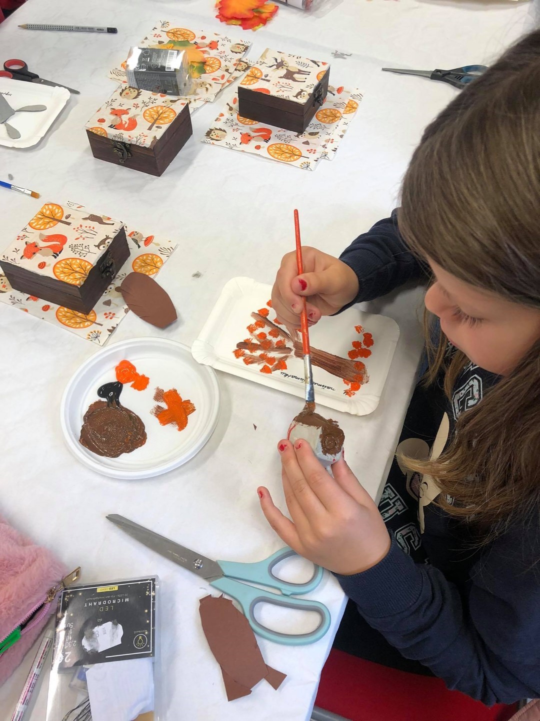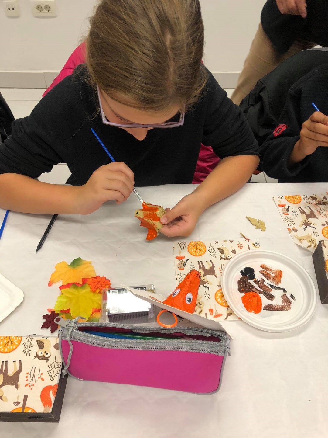 Potom su istog dana u goste došli učenici 3. d razreda OŠ Ivana Kukuljevića Belišće s učiteljicom Karmen Soldo na kreativnu radionicu koju se vodila djelatnica Centra Bojana Reçica. Radionica je bila nastavak odlične suradnje na izradi slikovnice, a učenici su izradili portret šumske životinje od kutija za jaja, rasvjetni lanac ukrasili jesenskim lišćem, a naučili su i decoupage tehniku na drvenim kutijicama.