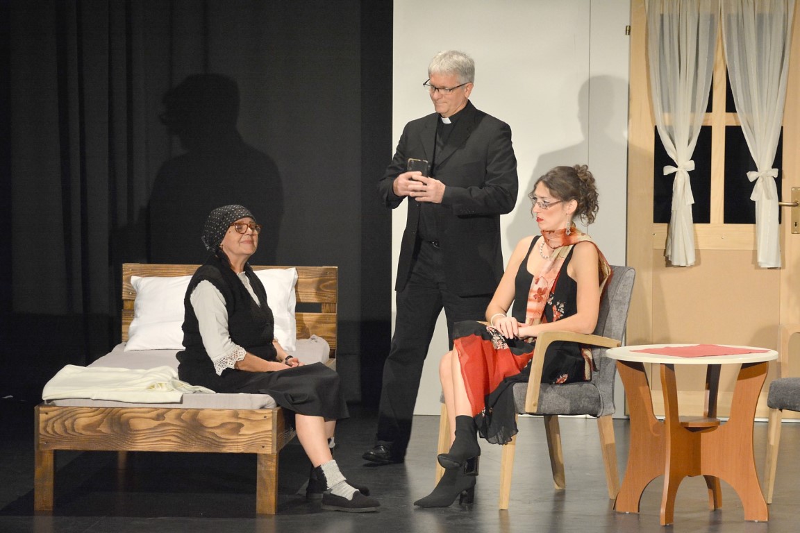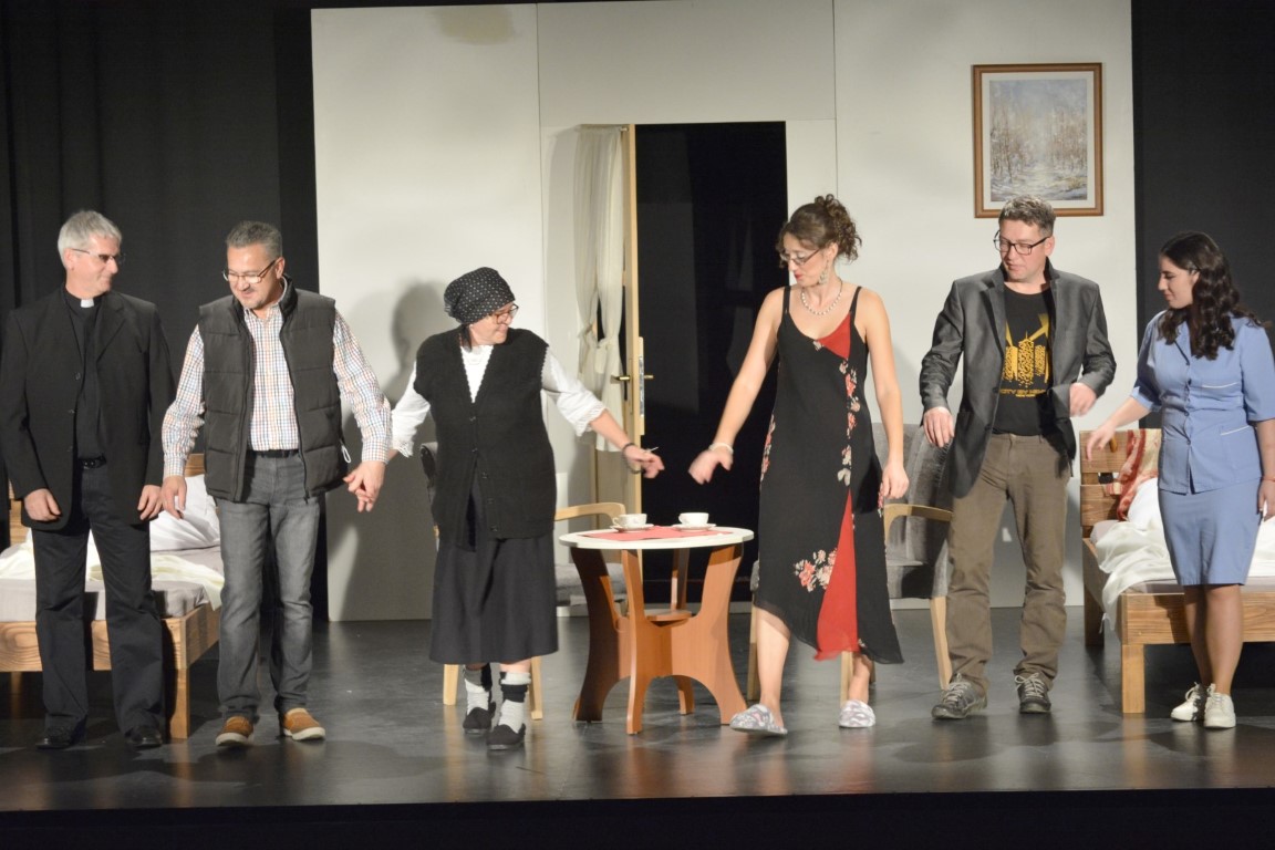 Publiku su svojom odličnom izvedbom ove humoristične predstave zabavili i nasmijali do suza glumci belišćanskog dramskog ansambla: Nevenka Blažević, Ana Srakić, Dubravko Šokčević, Ines Majdenić, Vlado Jung i Vladimir Paulić. Šaptačica je bila Ada Komaromy.