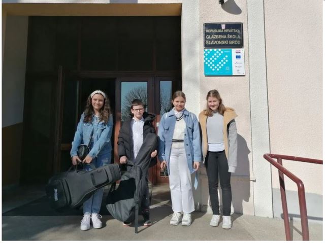 Jedanaesta međužupanijska smotra mladih gitarista Slavonije i Baranje održavala se u Slavonksom Brodu, a sudjelovali su Anja Barić (4. razred), Marta Dorić (3. razred), Karla Semialjac (3. razred) i Jakov Huis (2. razred).