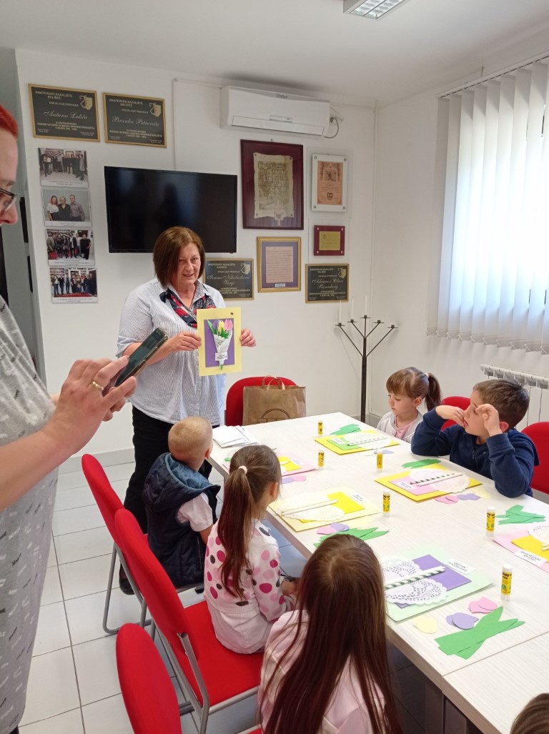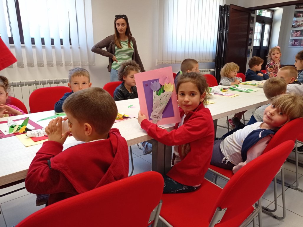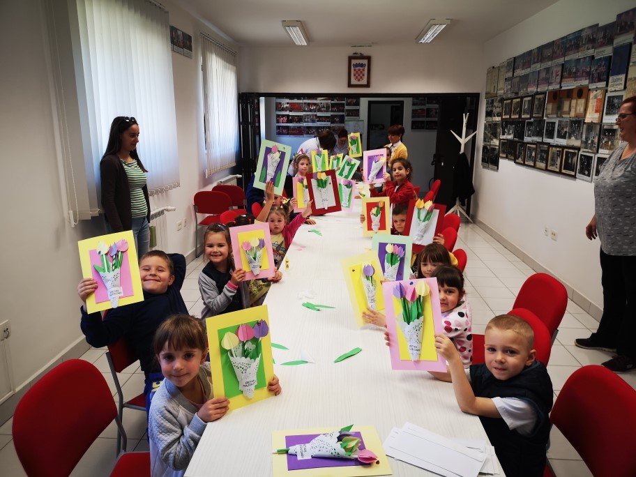 Nakon druženja na pozornici, održana je kreativna radionica "Čestitka majci" pod vodstvom Bojane Reçice. Djeca su od svima dostupnih materijala (papir u boji, papirnate slamke, podmetači za kolače) napravila čestitku na kojoj se nalazi vedri proljetni buketić kojemu će se zasigurno obradovati svaka majka.