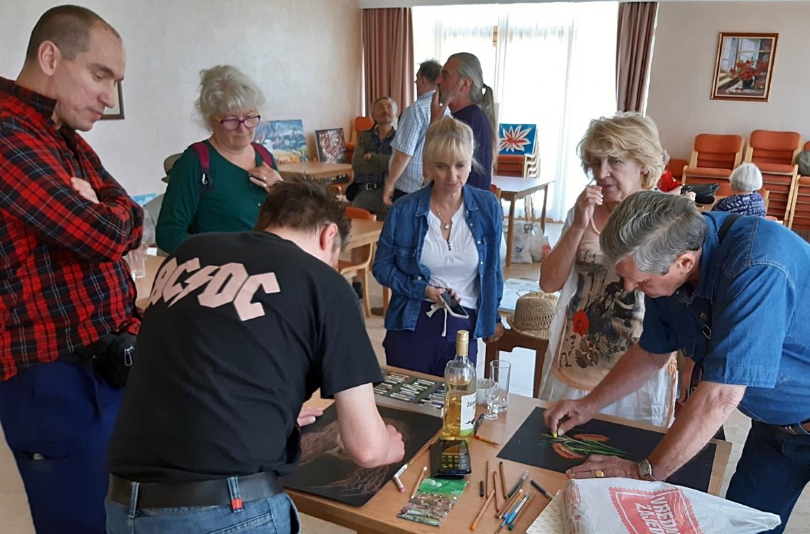 Prvog dan kolonije umjetnici su se prihvatili slikarskih špahtli, kistova, ulja, akrila, pastela i ostalog slikarskog materijala te prionuli na stvaranje novih, zanimljivih slika.