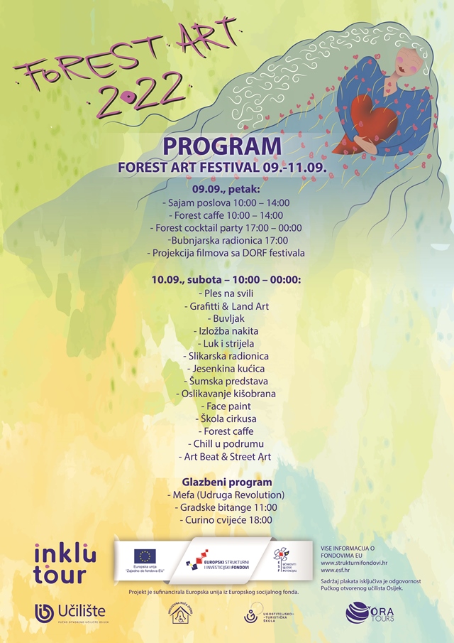 Ove godine očekuje nas bogat program za sve uzraste: brojne slikarske radionice, ples na svili, predstave, škola cirkusa, šumski kafić, ukusna hrana, bogat glazbeni program, sajam poslova i još puno toga.