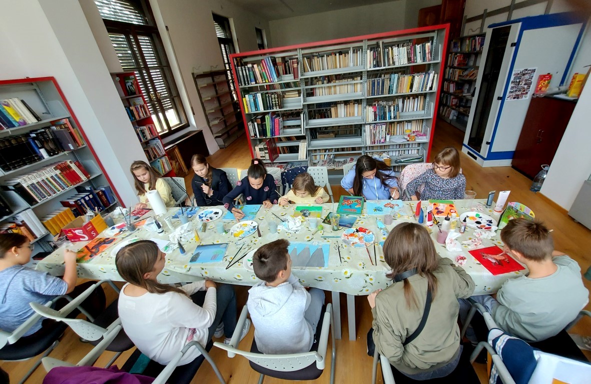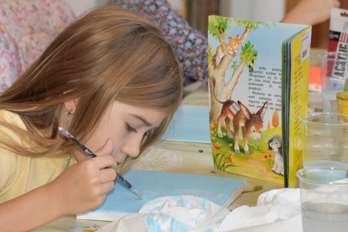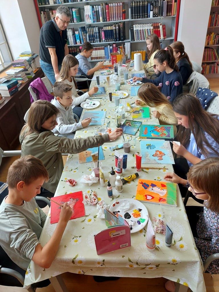 Istovremeno, predsjednik udruge Bel-Art, Ivan Vajda, vodio je slikarsku radionicu s desetak osnovnoškolaca. Oni su tehnikama akvarela i akrila oslikavali platna s motivima i likovima iz njihovih najdražih knjiga. Radove su na kraju ponijeli kući.