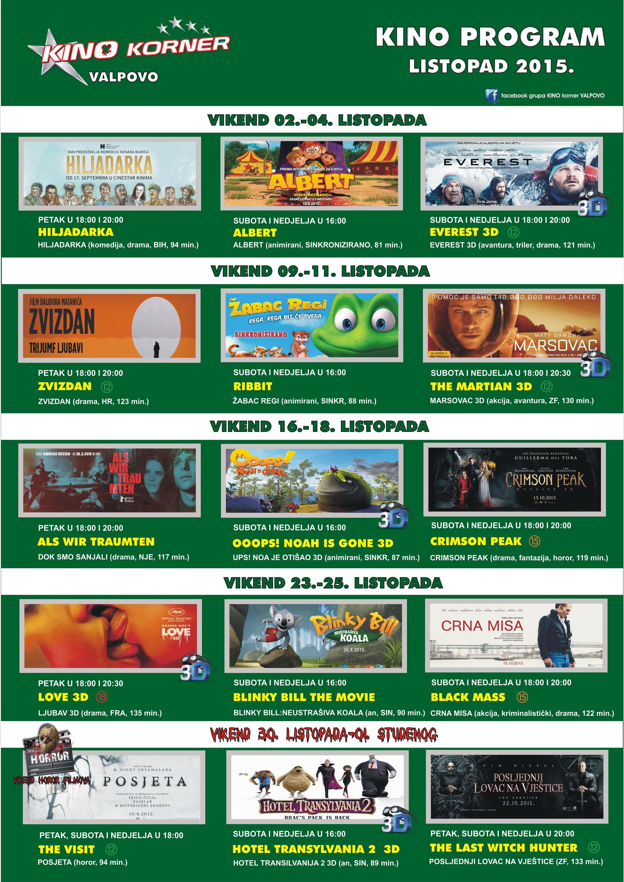 RASPORED PRIKAZIVANJA FILMOVA ZA VIKEND 02.- 04. LISTOPADA