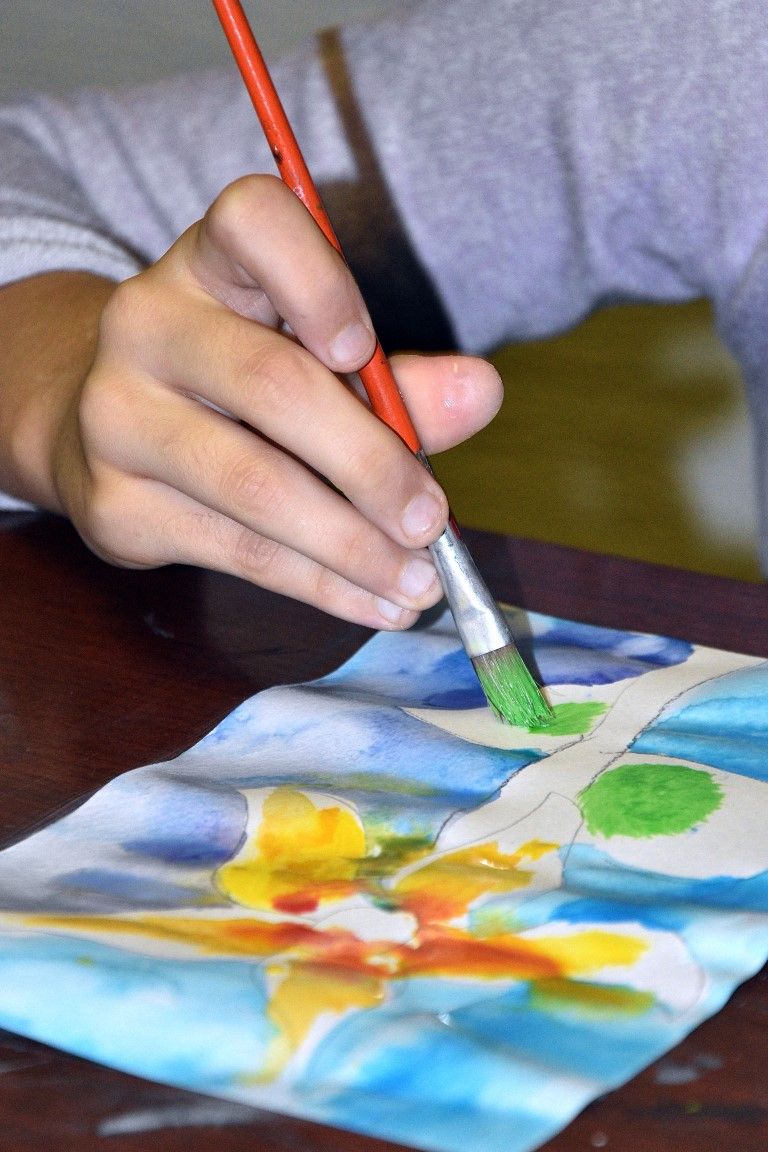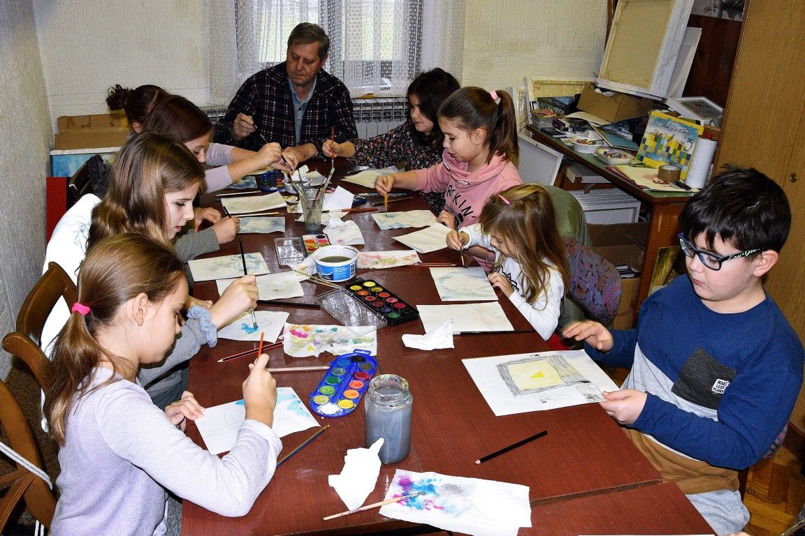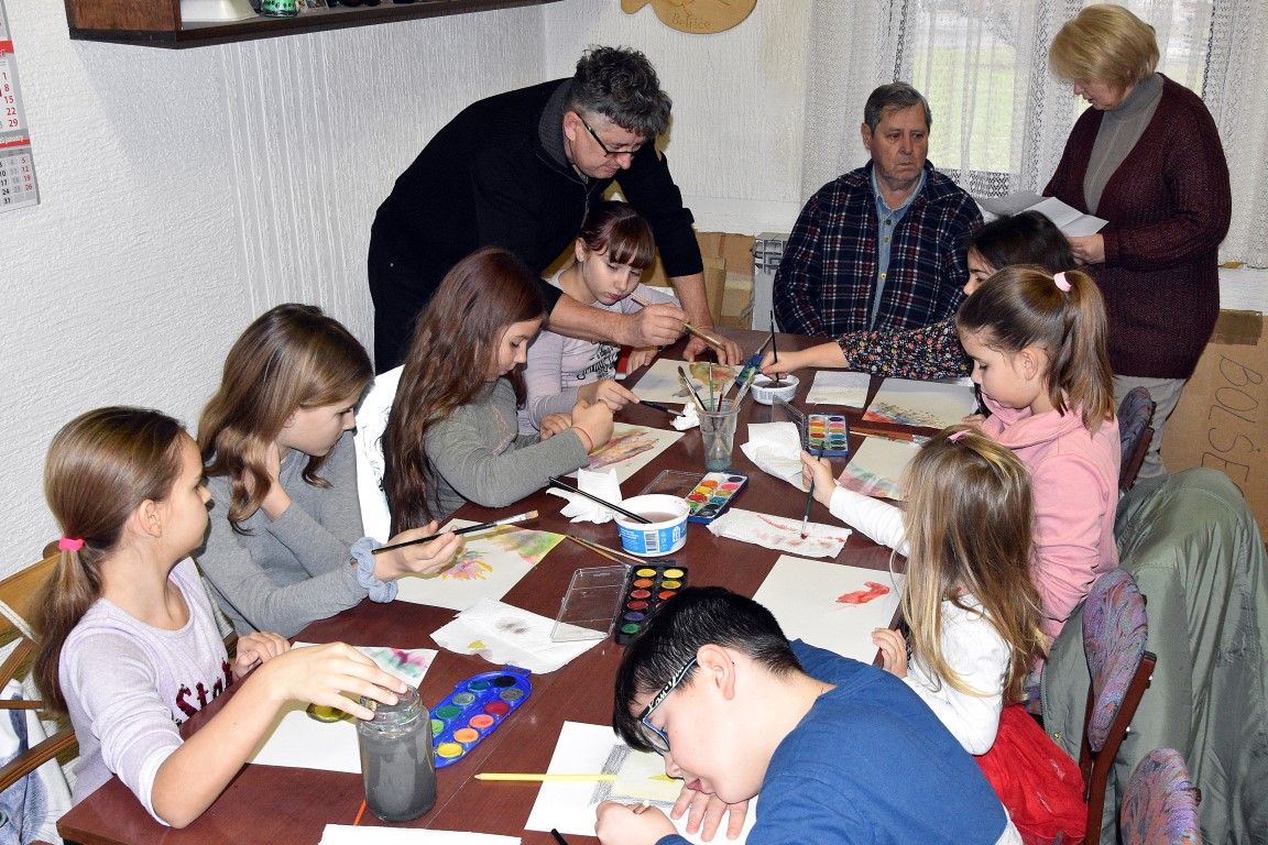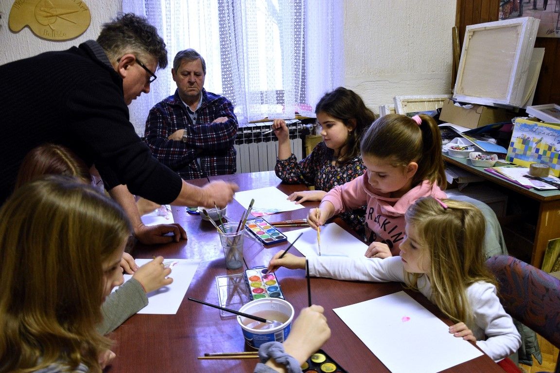 Mladim polaznicima radionice akvarel tehniku pokazao je Ivan Vajda uz pomoć Antuna Sabe.