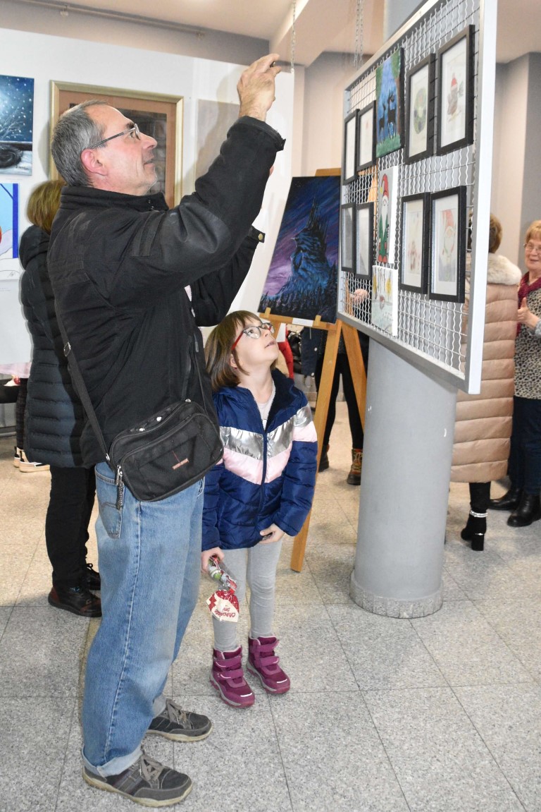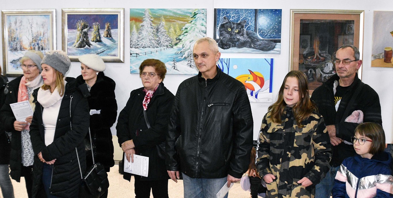 Čistoća i mirnoća zime može sadržavati šarm kada ju interpretira ruka umjetnika. Zimska bajka period je pitomih ravnica, udobnog čitanja uz vatricu i pokoji topli napitak. Priroda možda sniva, ali umjetnikova mašta je uvijek budna. Važno je zamijetiti kako je drveće glavni i dominantni motiv ove izložbe. Gledajući u slike i crteže, dobije se dojam kako se ovdje želi ispričati djelić slavenskog života isprepleten stvarnošću i mitologijom. Pogled na zimu kroz oči umjetnika ukazuje i na to da zima nije isključivo bijela te da se ovdje radi o promišljanju kada se bira motiv. Možemo zamijetiti kako kreativci favoriziraju jutro ili zalazak sunca, jer su tada boje na nebu intenzivne pa daju određeni šarm prizoru i atraktivni kontrast. Kod primjera mrtve prirode primarni su zemljani tonovi koji podsjećaju na zadnje trenutke jeseni i nagovještaj idućeg godišnjeg doba. I sama ravnoteža svakog djela postignuta je optimalnim omjerom definiranih oblika i boje po umjetnikovom nahođenju koji su ravnomjerno raspoređeni u formatu. To je osobito prisutno kod primjera sa crtežom, gdje je ravnoteža, a i perspektiva, postignuta omjerom crnog i bijelog te varijacijom tankih i debljih linija. O kojoj god se tehnici radilo, naši kreativci bili su prvenstveno inspirirani dojmom prirode pod snježnim pokrivačem, dok je čovjek ovaj put ipak u nekom drugom planu ili pak samo promatrač prizora ispred sebe. Maleni pijun u priči koja se odvija oko njega.