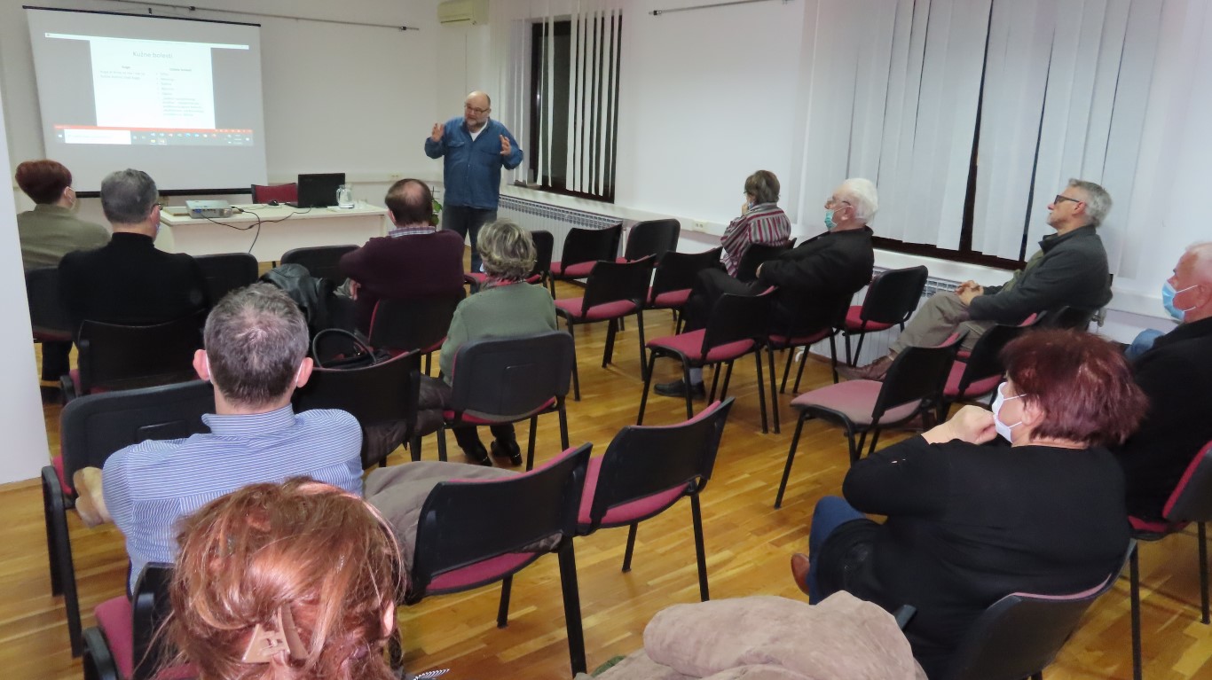 Često je predstavljao književnike i povjesničare, a sinoć je govorio o kužnim bolestima, higijeni, epidemiološkim mjerama, liječenju, prvim antivakserima, zabludama i dobrim iskustvima u liječenju teških zaraznih bolesti .