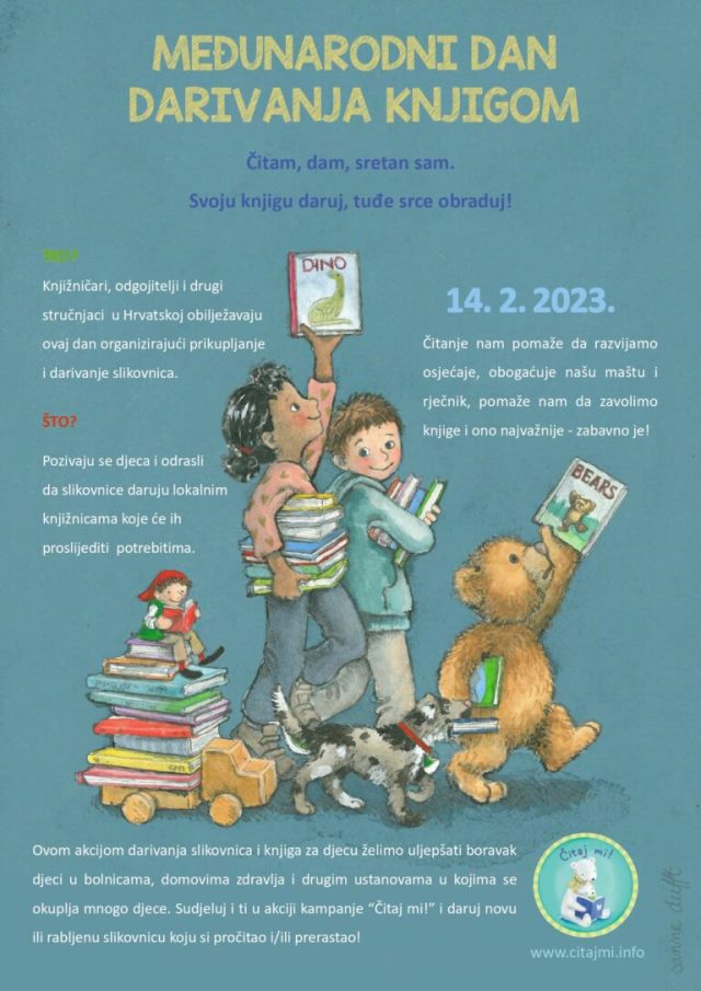 VALPOVO Gradska knjižnica i čitaonica Valpovo, povodom Međunarodnog dana darivanja knjiga koji se obilježava 14. veljače, organizira akciju prikupljanja slikovnica i knjiga za djecu.