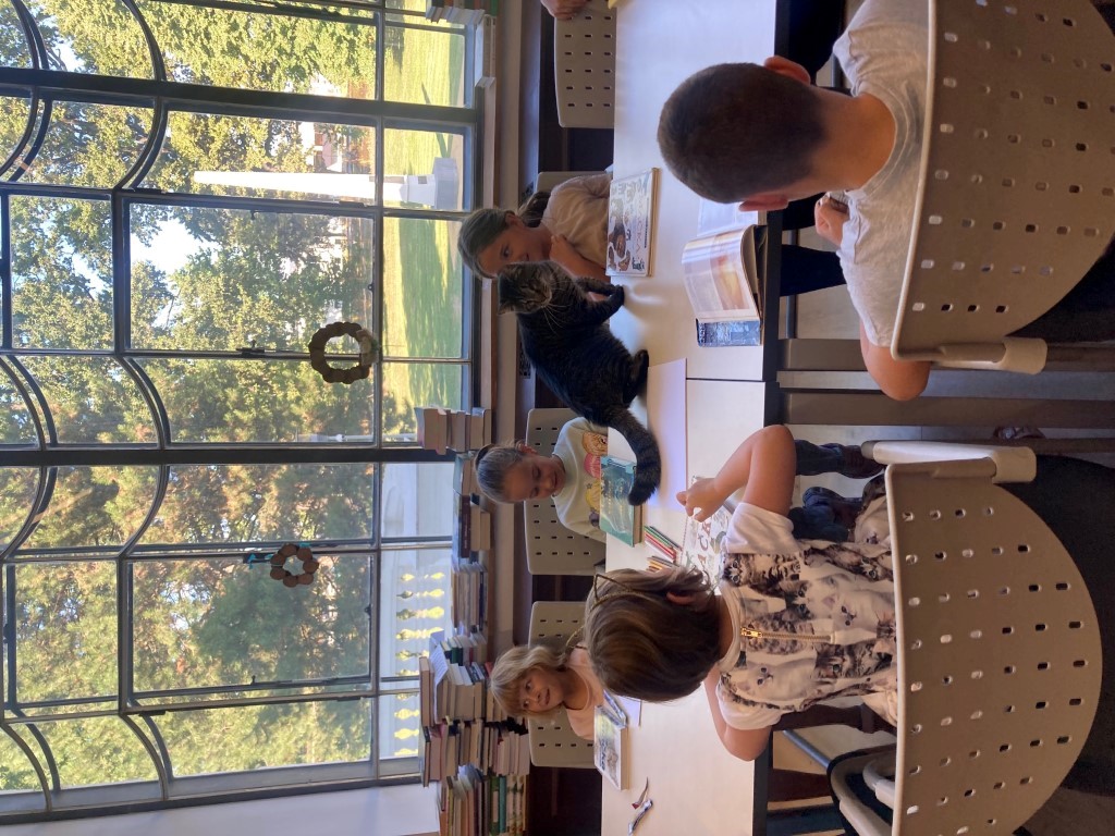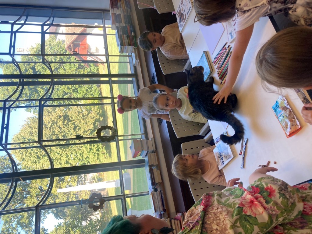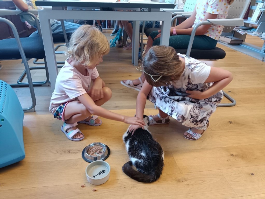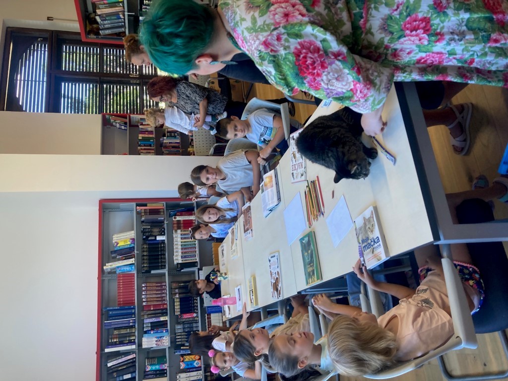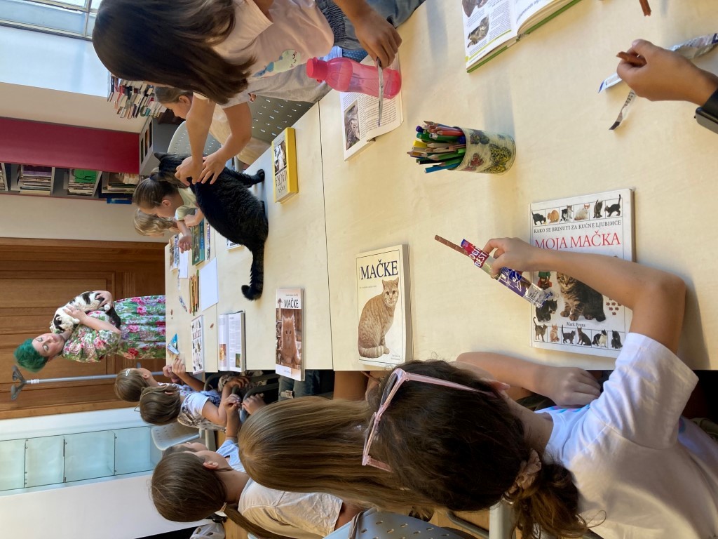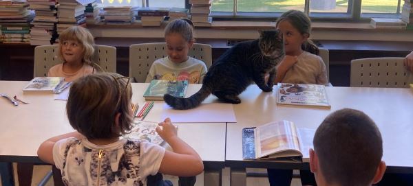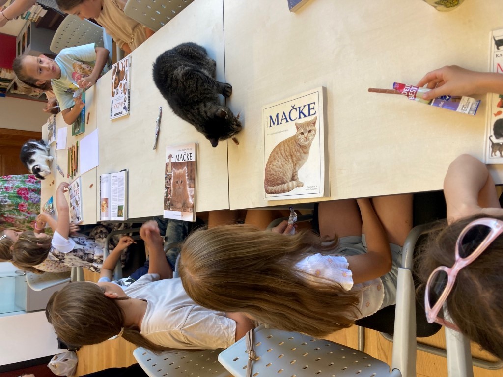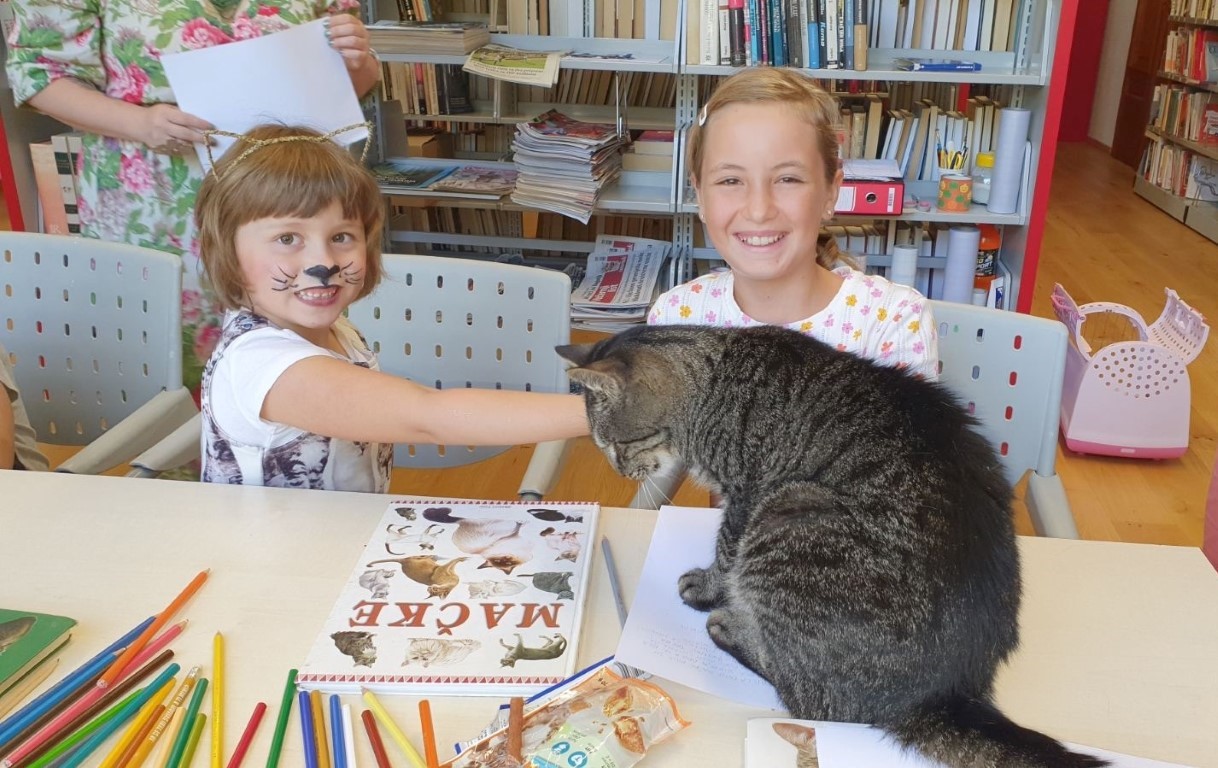 Radionicu pod nazivom Mačak pismonoša za djecu osnovnoškolskog uzrasta osmislila je Iva Bačmaga. Djeca su imala priliku prelistati knjige o mačkama koje Knjižnica posjeduje, a potom su se upoznala s mačkama koje su spašene s ulice i sada žive s Ivom. Kroz razgovor, maženje i igru s mačkama djeca su otvorila svoje srce te iskreno napisala pisma i nacrtala crteže kroz koje progovaraju kako bi mogli pomoći životinjama na ulici. Dva mačka što su sudjelovala na radionici upravo su bili napušteni, slijepi su te slabije čuju, ali sve to nije spriječilo djecu da se poigraju sa životinjama, pomaze ih i daju im hranu.