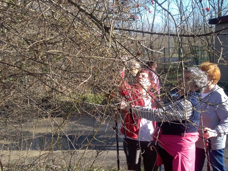-Dio muške ekipe prihvatio se skupljanja drva i loženja vatre. Nas šest članica odlučile se na još malo hodanja i uputile se na vodocrpilište prema Gatu. Put smo nastavile lijevo uz šumu i oranice. Usput smo uživale u branju i zobanju slatkih i sočnih plodova šipka. Unijele smo si u organizam vitamina C, a sunce nas grijalo i davalo vitamin D. Kažu da su ti vitamini dobri za jačanje organizma i čuvaju nas od ove nenormalne korone. Skrećemo s puta na šumski put i lagano stižemo do našeg odmorišta.
