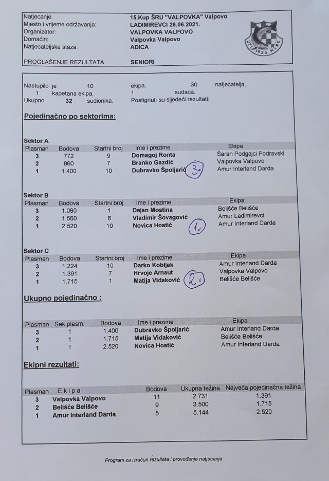 LADIMIREVCI U sklopu današnjeg programa Ljeta valpovačkog, tijekom prijepodneva održan je na Adici u Ladimirevcima 15. Memorijalni kup ŠRU "Valpovka" Valpovo.