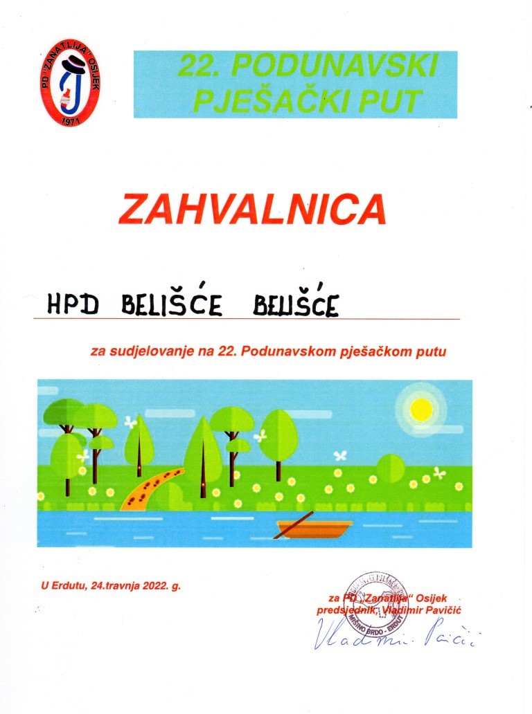 Prošli su stazom od Mosta 107. brigade do Odmorišta Drava u Bistrincima i pokupili smeće. U nedjelju 24. travnja u organizaciji HPD „Zanatlija“ Osijek održan je skup planinara „Podunavski pješački put“ u Aljmašu i Erdutu.