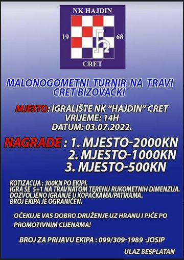 CRET BIZOVAČKI Nogometni klub Hajdin iz Creta Bizovačkog organizator je malonogometnog turnira na travi.