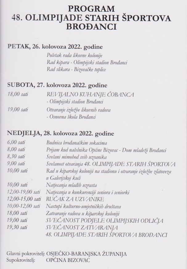 BROĐANCI Tradicionalnim, prigodnim umjetničkim programom, u petak, 26. kolovoza započet će 48. Olimpijada starih športova.