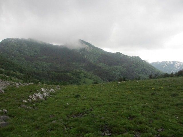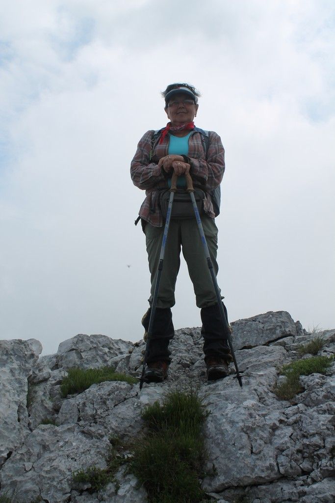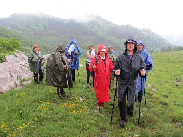 Pogled u nebo govorio je sve. Plan koji smo imali za četiri dana treba mijenjati i prilagoditi vremenskim uvjetima. Naš mladi, ali stručni i iskusan vodič, Goran Maričić i pomoćni stariji, Franjo Šmit, predlažu da ovaj dan odradimo nama nekima već viđen i najljepši dio Bačić kuk i Budakovo brdo. Vozilima krećemo do najbliže točke polaska Dabarske kose i krećemo u pravcu Bačić kuka. Ubrzo se prolila kiša i pratila nas cijelim putem do podnožja. Obzirom da je vrh skupina golemih stijena i uspon zahtjevan, odustajemo od uspona i nastavljamo dijelom kroz šumu crnog graba i bukve, pa zelenim proplancima punim predivnog cvijeća u pravcu Budakovog brda. Prestaje kiša. Pojavljuje se sunce pa trava u svim nijansama zelene boje zablista. Na sve strane procvalo je cvijeće: žuti ljiljani, perunike svih boja i vrsta, bijele iružičaste divlje ruže i drugo cvijeće svih boja (najviše žute) a majčina dušica širi svoj opojni miris. Na prelijepo Budakovo brdo stižemo u 10,30 sati. Uživamo u pogledu na more i na divovske kamene masive dabarskih kukova oko kojih su u blagom luku prostrane šume. visina je 1318 m. Nakon ručka iz ruksaka spuštamo se i obzirom da ima još vremena odlučujemo se za još jedan lijepi vrh Visibabu 1160m . Prolazeći dijelom istim putem odasvud nas mami vrh Bačić kuka, ali odolijevamo iskušenju. stižemo na ovaj lijepi vrh Visibabu s predivnim pogledom na more i Dabarske kukove. Fotografski aparati bilježe lijepe prizore i krećemo dolje stjenovitim i strmim kanjonom. staza se zove Prpana. Naziv i odgovara stvarnom stanju i pomalo nas podsjeća na Lipu stazu J. Velebita- Stižemo do vozila i u domu smo u 17 sati. Mokra odjeća i gojzerice. ali zadovoljstvo potpuno-prešli 13,6 km. Slijedi priprema večere, druženje i počinak. Večera podgrijani zamrznuti grah.