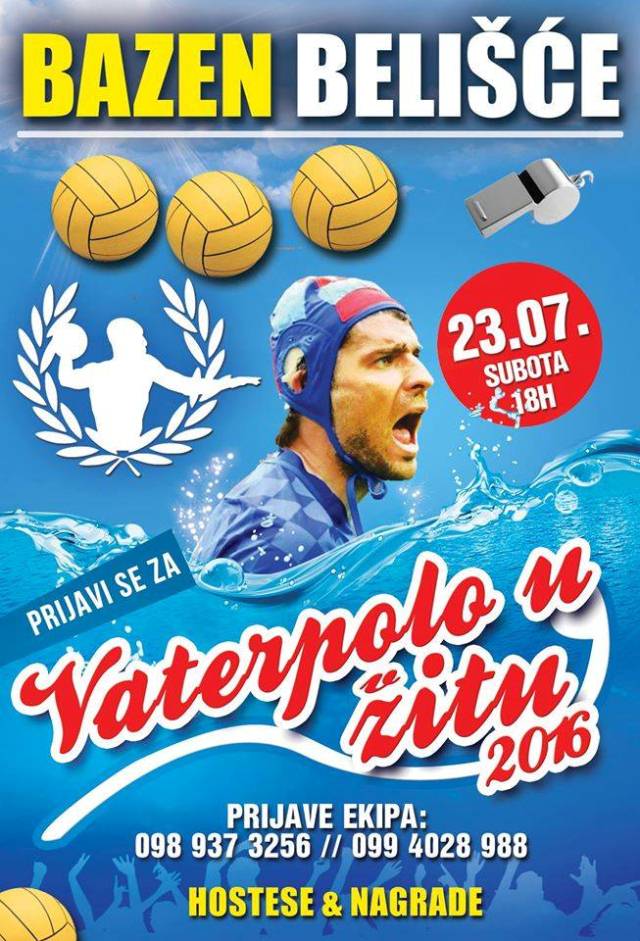 Romberg pub Belišće, Bazen Belišće te Oštri Gang Belišće vas pozivaju na 4. Vaterpolo u žitu –amaterski vaterpolo turnir, koji će se održati u subotu 23.srpnja, u 18h, na Bazenu Belišće. Već tradicionalno prije turnira svoje vaterpolsko znanje i vještine će pokazati juniori VK Osijek.