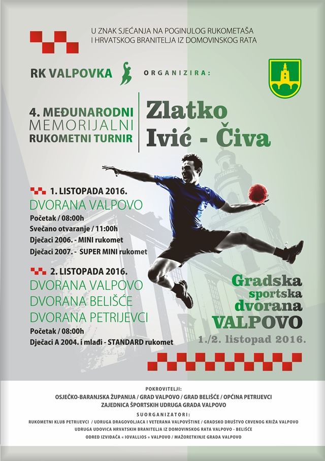 VALPOVO/BELIŠĆE/PETRIJEVCI Rukometni klub Valpovka sljedećeg će vikenda biti domaćin 4. Međunarodnom memorijalnom rukometnom turniru "Zlatko Ivić Čiva"