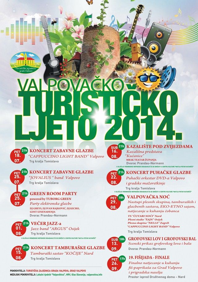 Kako bi nastavili ovu, sada već tradicionalnu manifestaciju po kojoj je grad Valpovo dobio svoju prepoznatljivost tijekom ljetnih mjeseci, Turistička zajednica grada Valpova ove je godine osmislila raznolik program koji će trajati tijekom ljetnih mjeseci i početkom jeseni (prva manifestacija održati će se 18. srpnja, a posljednja 26. rujna). U bogatom i raznolikom programu nastupiti će tamburaški i zabavni bandovi, plesne skupine, puhački zbor i mažoretkinje, održati će se koncert elektronske glazbe te kazališna predstava u prostoru valpovačkog srednjevjekovnog dvorca, EKO-ETNO sajam i natjecanje u kuhanju čobanca na tradicionalnoj „Valpovačkoj noći“, scenski prikaz grofovskog lova i grofovskog bala te naposljetku finalno natjecanje u kuhanju fiš paprikaša za grad Valpovo. Pokrovitelji ovogodišnje manifestacije su TZ grada Valpova i Grad Valpovo.
