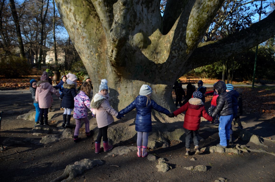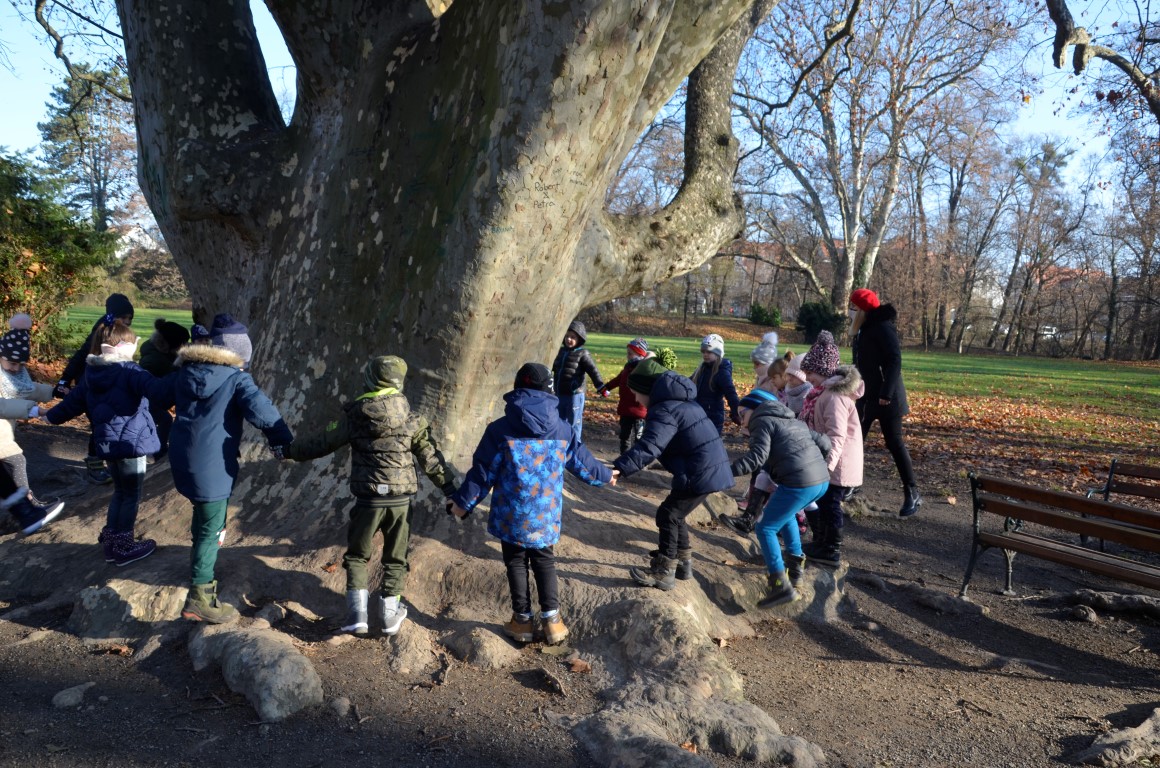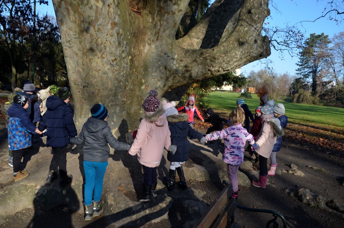 Okolnosti su uvjetovale mjesto, vrijeme i sadržaj susreta, pa je trajao kratko, tek toliko da mališani oko platana u Valpovačkom perivoju pokažu kako se znaju veseliti i pjevati te da razmjene čestitke i darove u čast Dana grada.