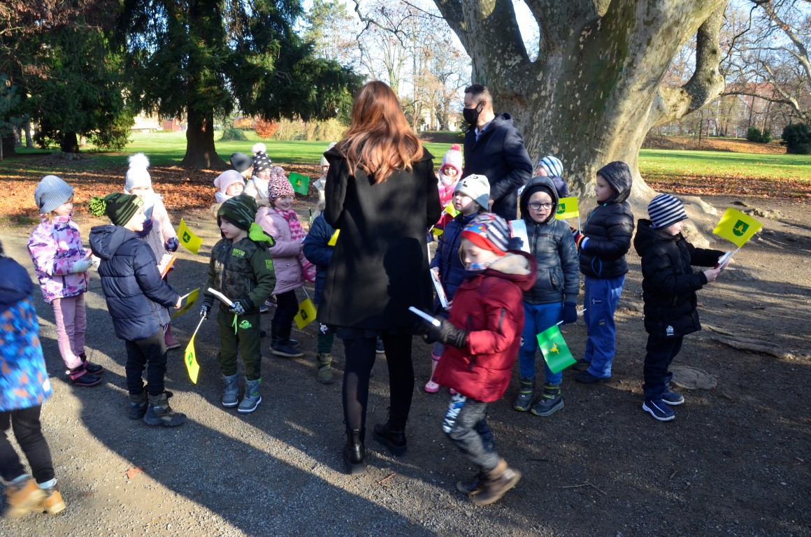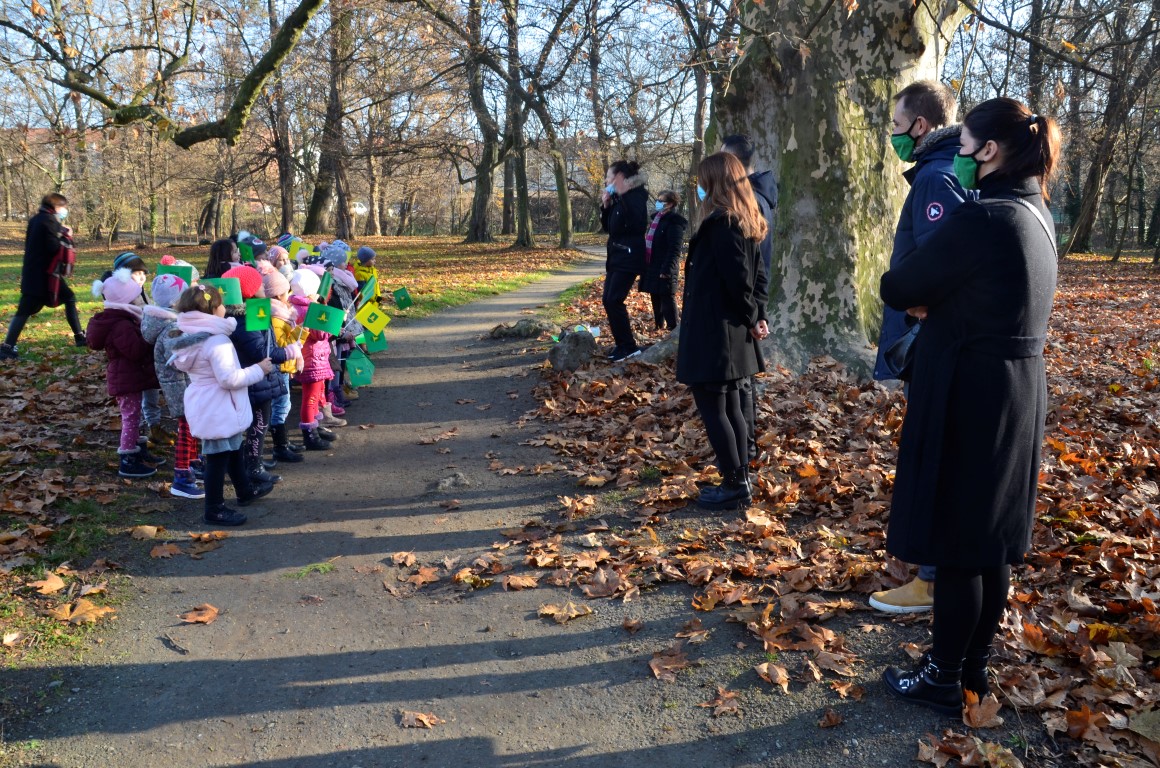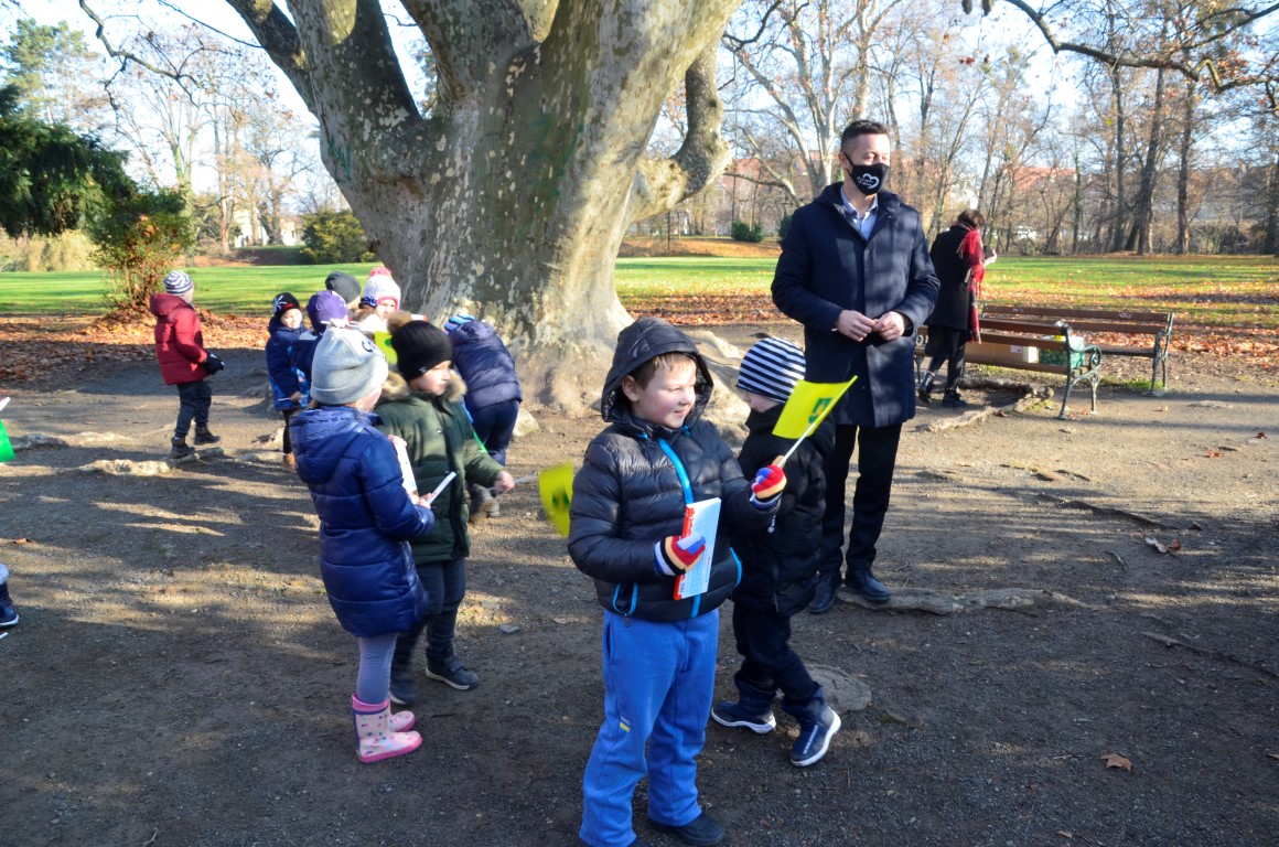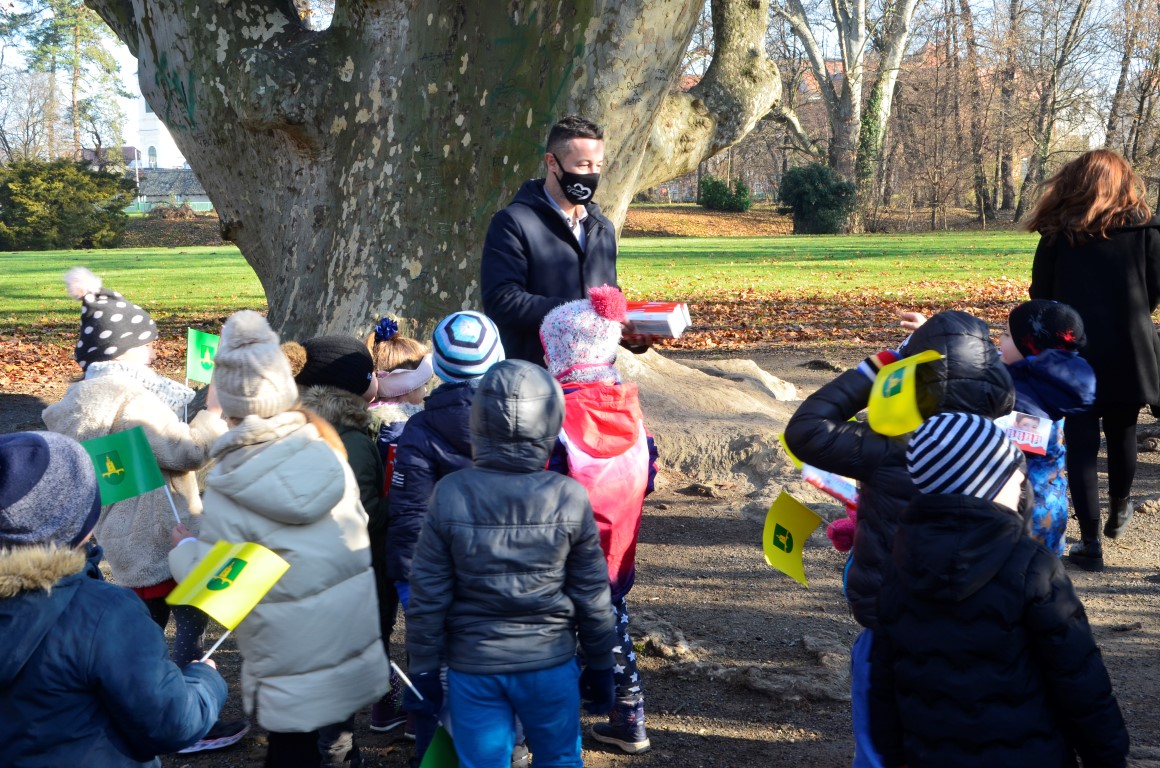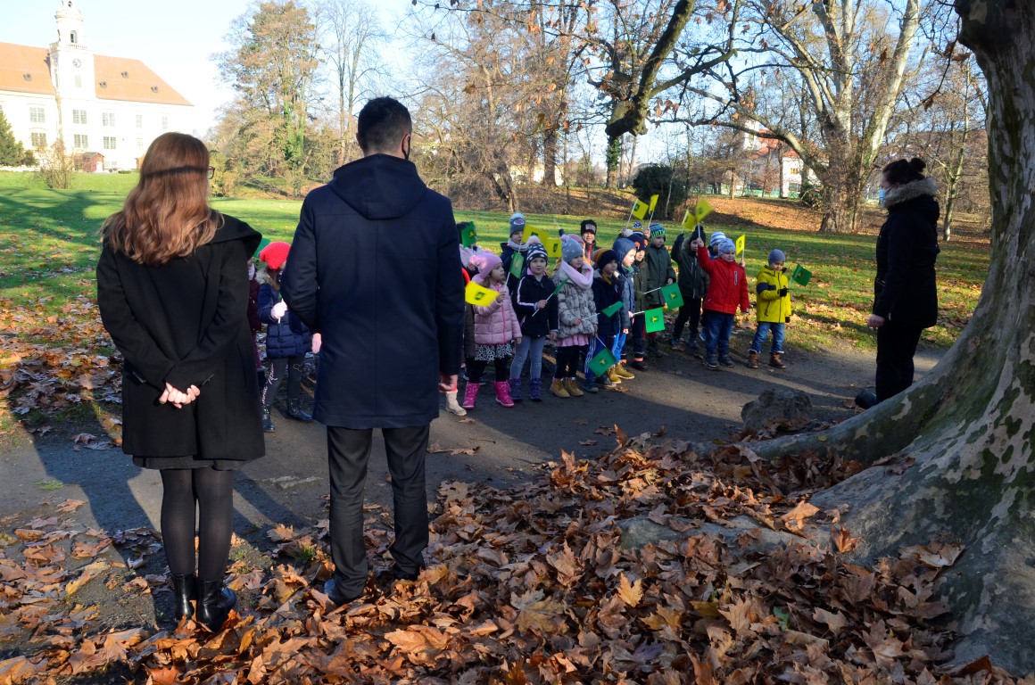 Lijep, sunčan kasnojesenji dan, pružio je lijep dekor za kratko druženje mališana iz predškolskih skupina Kapljice i Šapice koji su u pratnji svojih odgojiteljica, pedagoginje Jelene Lacković i ravnatelja Ivana Peroševića s radošću zapljeskali i zapjevali gradonačelniku i zamjenici gradonačelnika Ani Brajnović, čestitali im i darovali svoje likovne radove. Za uzvrat dobili su nešto slatkiša i ozbiljno obećanje da će i dalje brinuti za to da im omoguće sretno djetinjstvo i odrastanje.