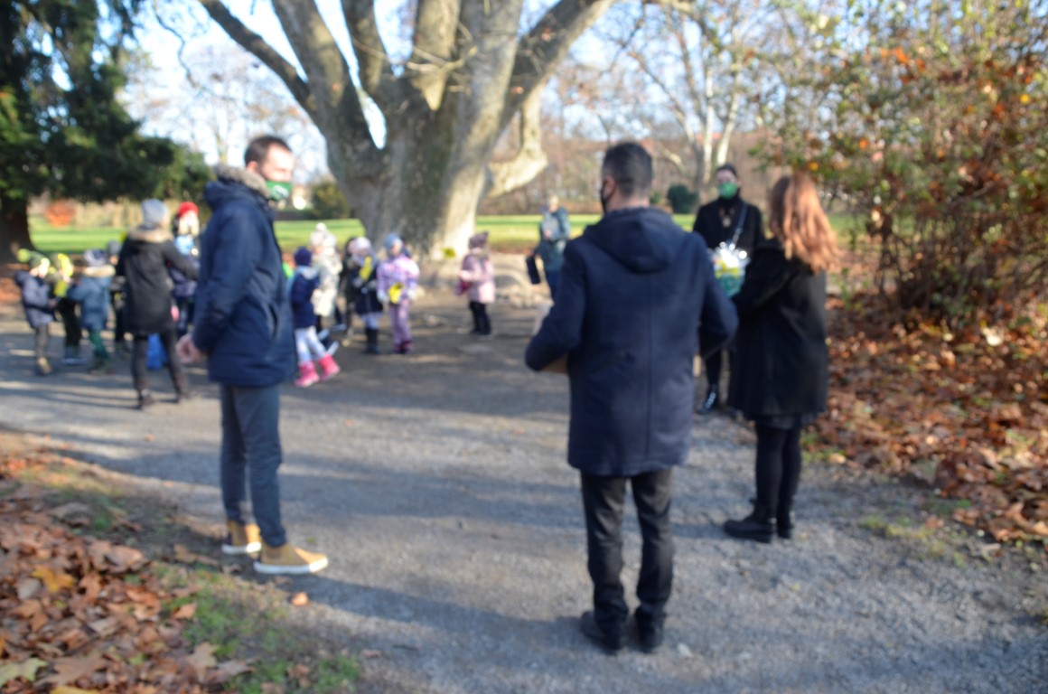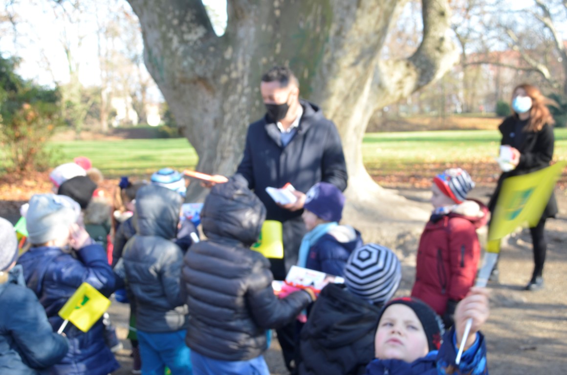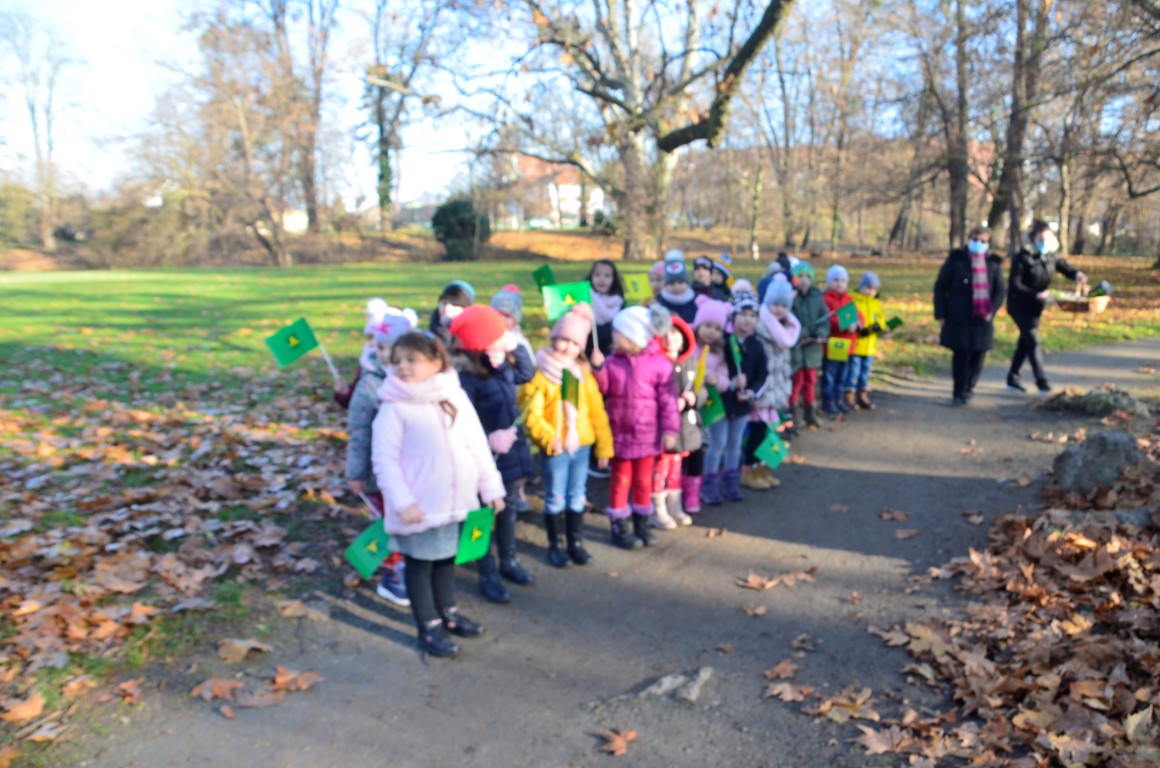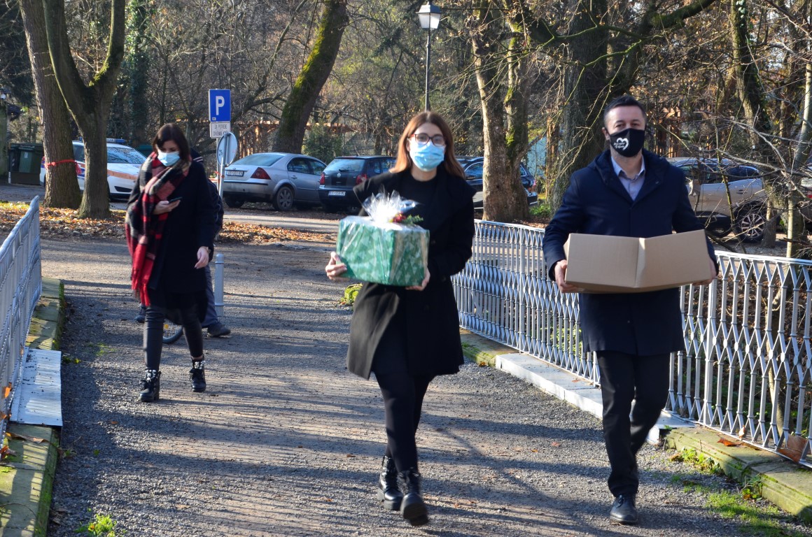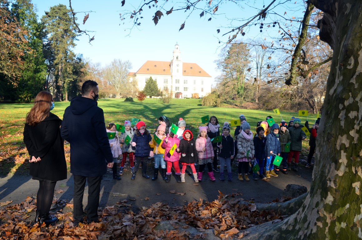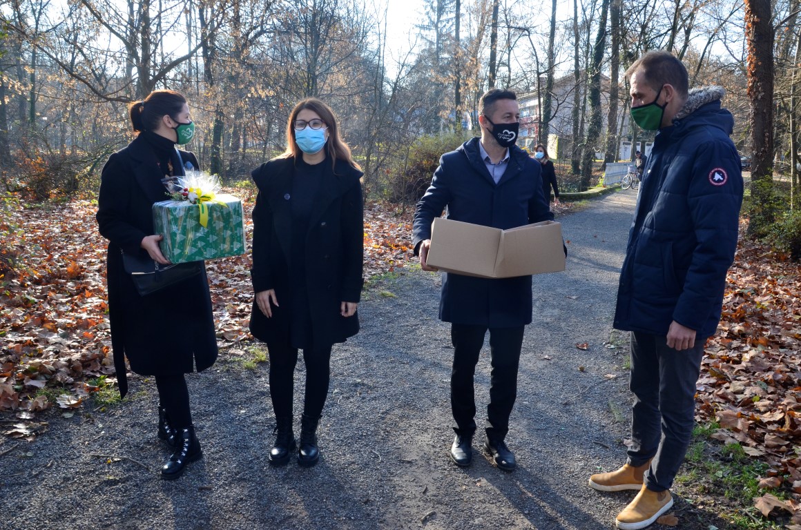 Lijep, sunčan kasnojesenji dan, pružio je lijep dekor za kratko druženje mališana iz predškolskih skupina Kapljice i Šapice koji su u pratnji svojih odgojiteljica, pedagoginje Jelene Lacković i ravnatelja Ivana Peroševića s radošću zapljeskali i zapjevali gradonačelniku i zamjenici gradonačelnika Ani Brajnović, čestitali im i darovali svoje likovne radove. Za uzvrat dobili su nešto slatkiša i ozbiljno obećanje da će i dalje brinuti za to da im omoguće sretno djetinjstvo i odrastanje.