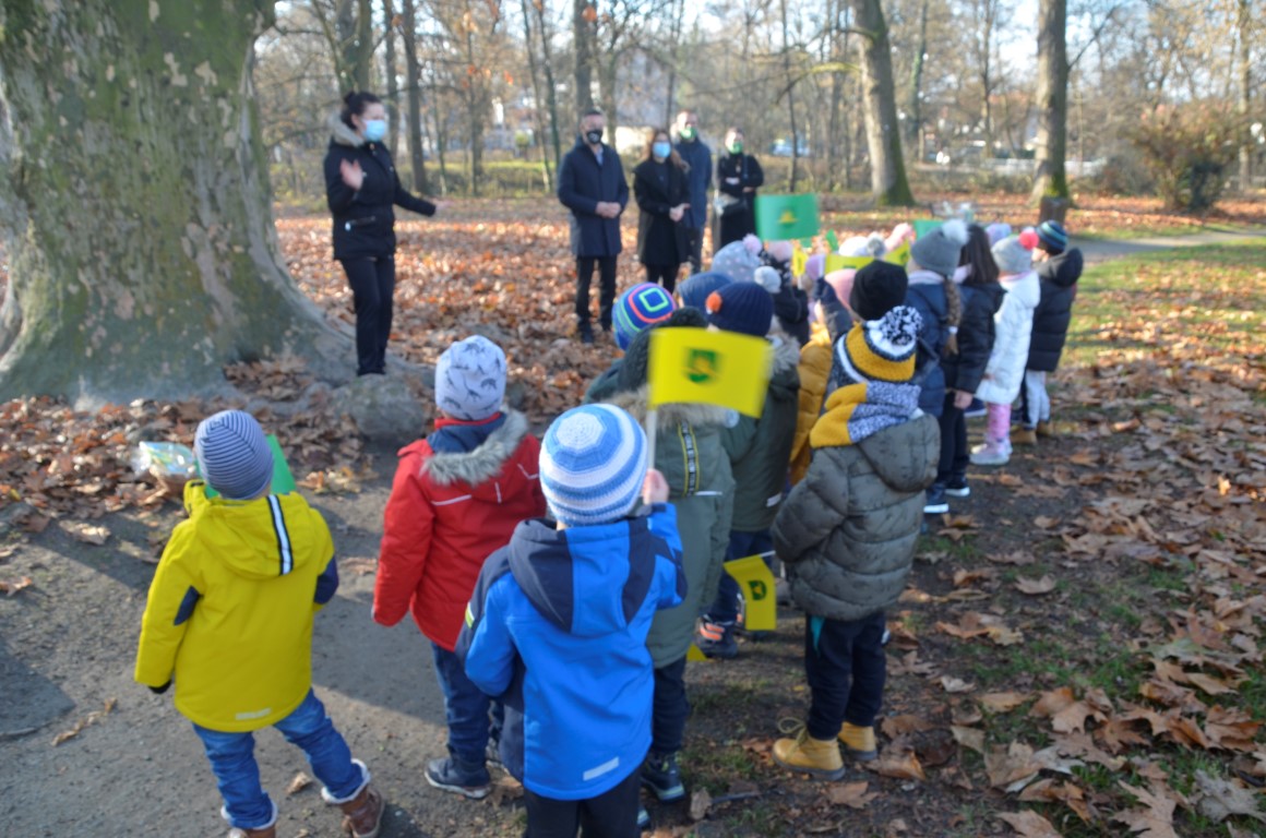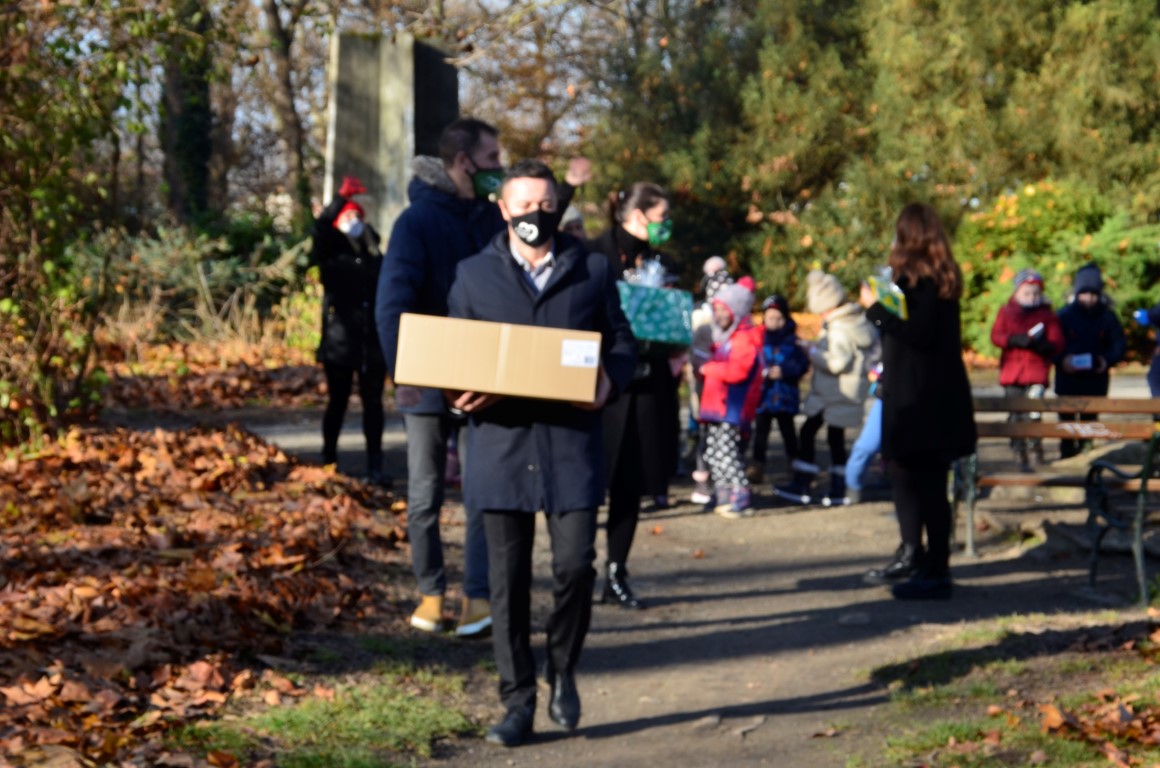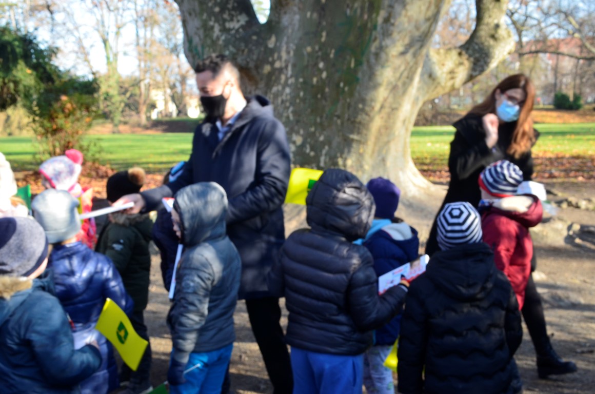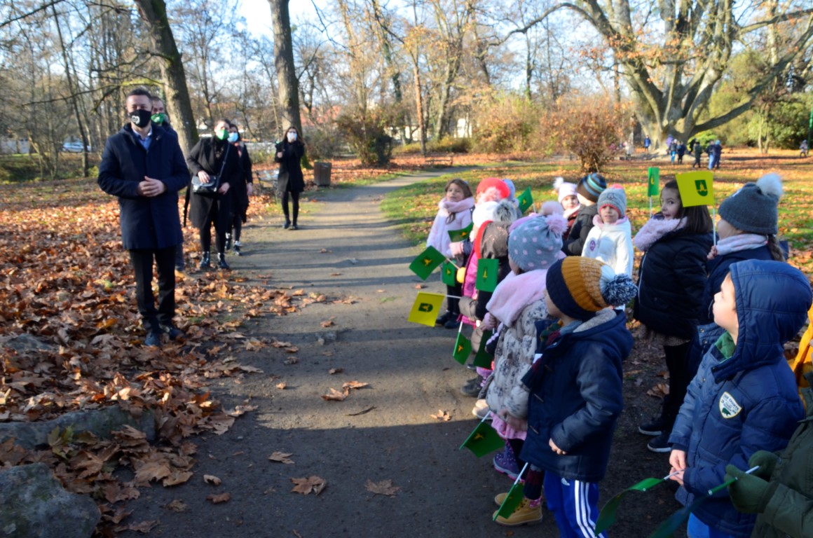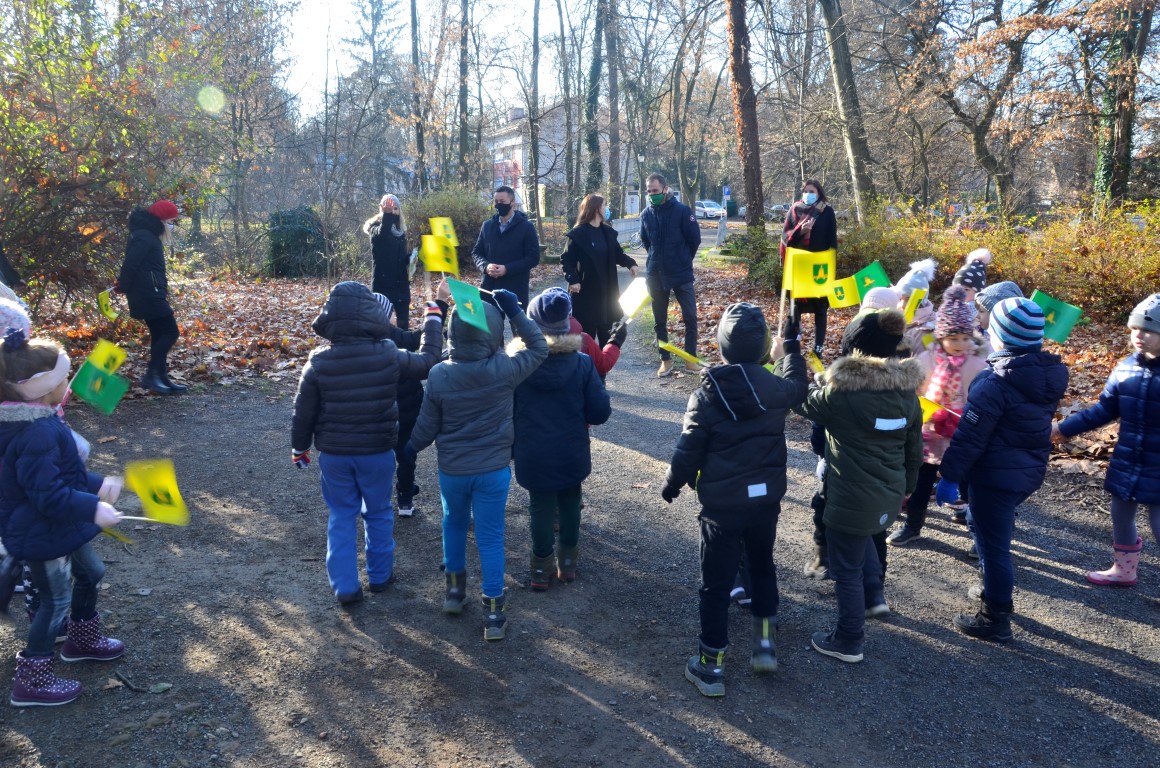 Lijep, sunčan kasnojesenji dan, pružio je lijep dekor za kratko druženje mališana iz predškolskih skupina Kapljice i Šapice koji su u pratnji svojih odgojiteljica, pedagoginje Jelene Lacković i ravnatelja Ivana Peroševića s radošću zapljeskali i zapjevali gradonačelniku i zamjenici gradonačelnika Ani Brajnović, čestitali im i darovali svoje likovne radove. Za uzvrat dobili su nešto slatkiša i ozbiljno obećanje da će i dalje brinuti za to da im omoguće sretno djetinjstvo i odrastanje.