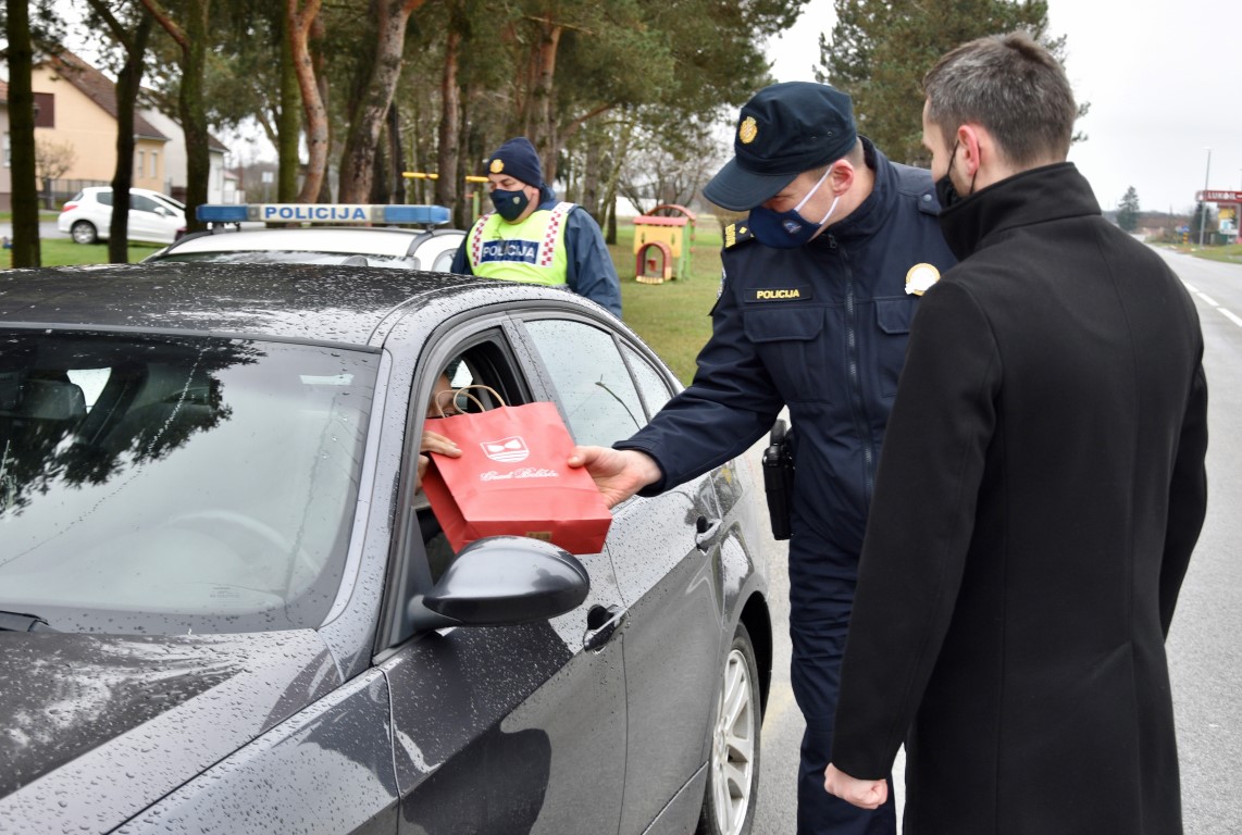 Uz dobre želje za božićne i novogodišnje blagdane te uz preporuku da i nadalje vode računa o vlastitoj, ali i o sigurnosti ostalih sudionika u prometu, vozačima su podijeljeni prigodni pokloni.