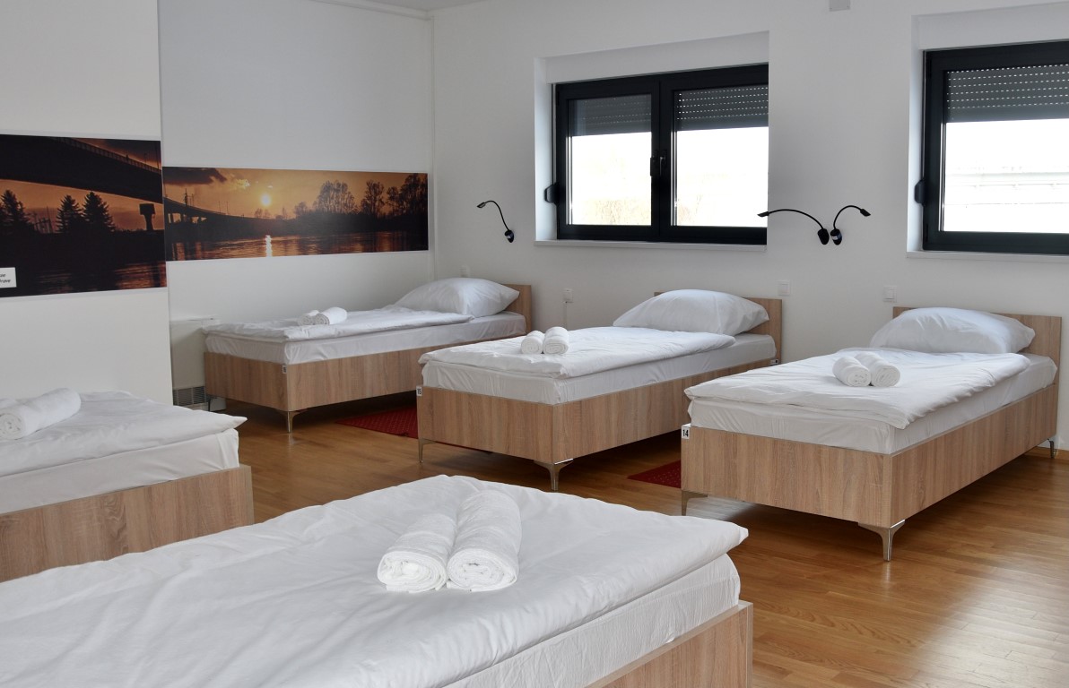 Hostel je smješten na obali Drave i raspolaže s 28 ležaja u 6 moderno opremljenih soba. Osim ukupno šest soba, u hostelu koji je predviđen kao Centar za posjetitelje nalazi se i zajednička multimedijska dvorana za različite sastanke i okupljanja, kuhinja za pripremanje obroka kako bi posjetitelji mogli uz noćenje dobiti i doručak, dnevni boravak, vanjska terasa s pogledom na rijeku Dravu te drugi sadržaji.