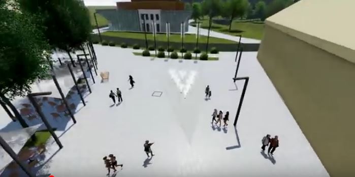 Prema onome što se može iščitati iz vizualizacije novog izgleda trga, po zamisli arhitekta Domagoja Ivanovića, na mjestu sadašnje pozornice bit će pojas zelene površine s jarbolima za isticanje zastava, a potom i nova fontana sa jedanaest mlaznica koje tvore stilizirano slovo V. Nema sumnje da će suvremena izvedba, s mlaznicama u ravnini popločane podloge donijeti i svjetlosne efekte koji će osobito noću, pružati atraktivan izgled, donijeti Valpovu i novu vizuru koja će plijeniti pozornost Valpovčana i njihovih gostiju.