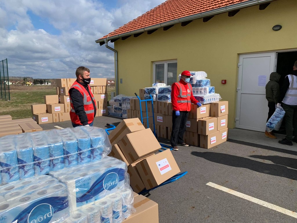 Podjele paketa se održavaju na pet lokacija: u Društvenom domu, Bistrinci; Edukativnom centru Bizovac; Domu Kulture, Ivanovci; Domu umirovljenika, Belišće, Lovačkom domu, Petrijevci i Vij. Hrvatske Republike 4, Valpovo. Slijedeći tjedan počinju i podjele paketa hrane.