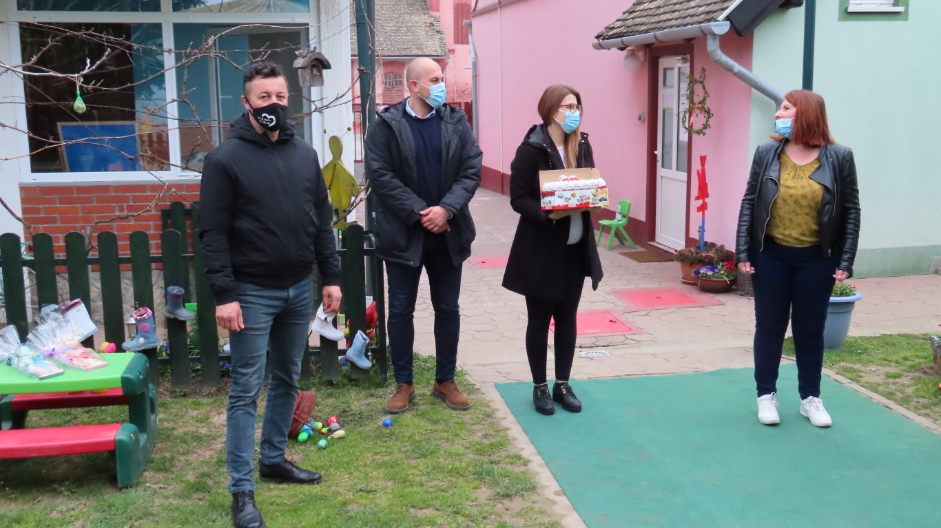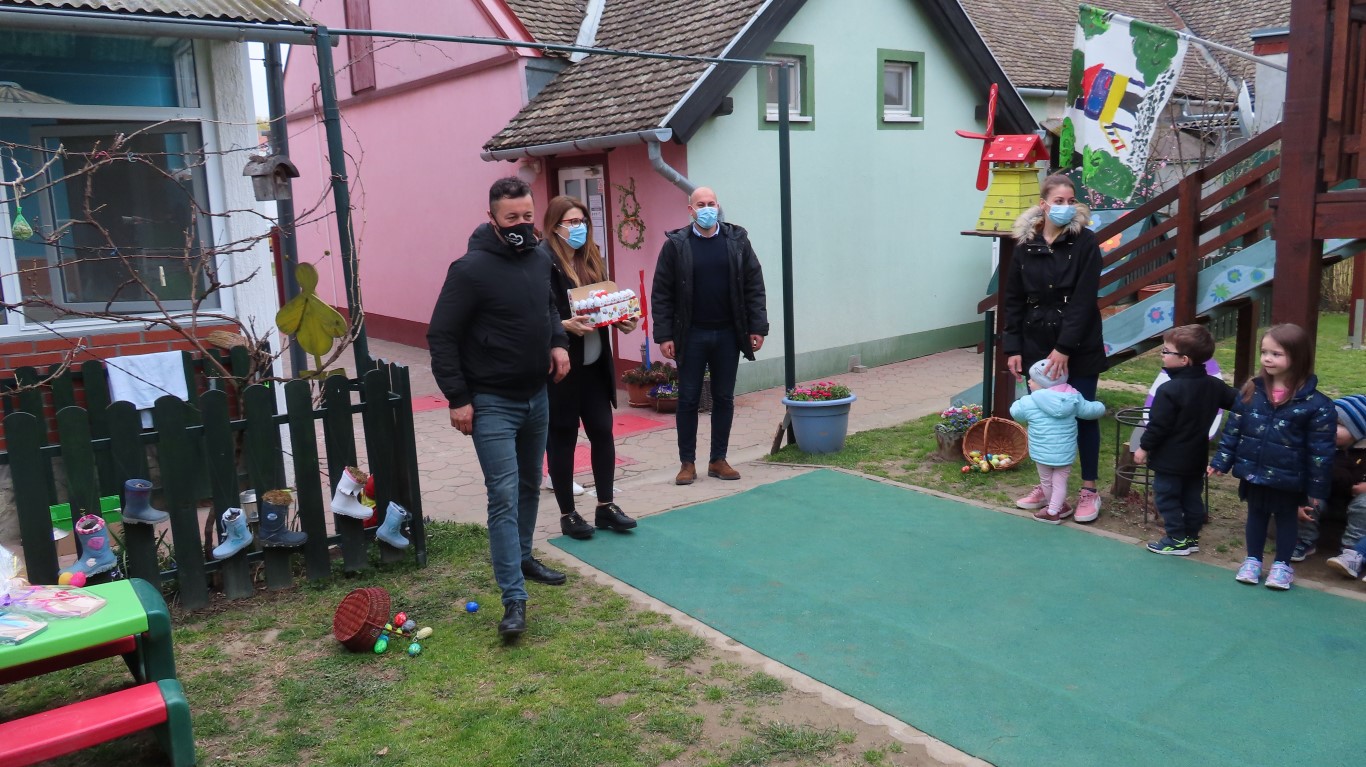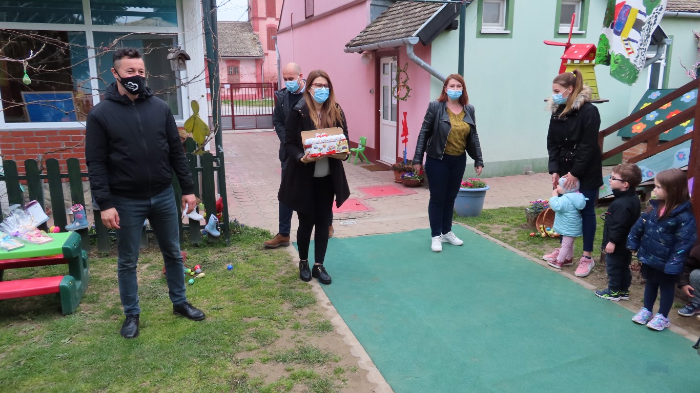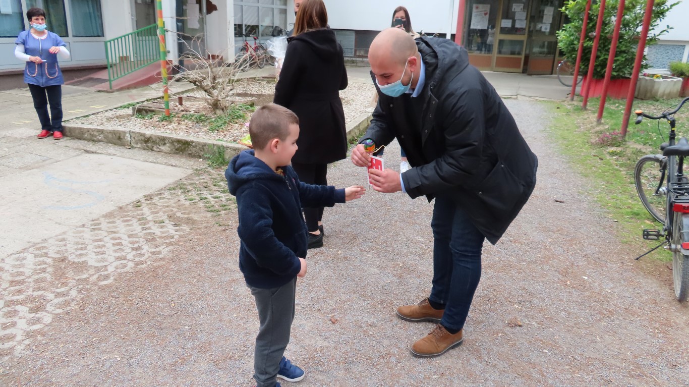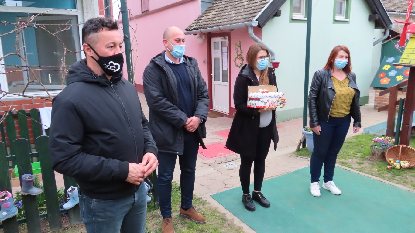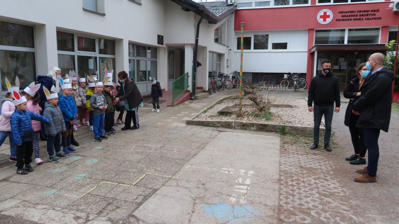 U sasvim izmijenjenim okolnostima, zbog provođenja protuepidemijskih mjera, gradonačelnika Šutala, njegovu zamjenicu Anu Brajnović i predsjednika Vijeća mjesnog odbora Valpova Marka Barišića u Dječjem vrtiću Moj Bambi dočekali su na otvorenom i uz prigodne pjesmice zahvalili na simboličnim darovima - čokoladnim jajima.