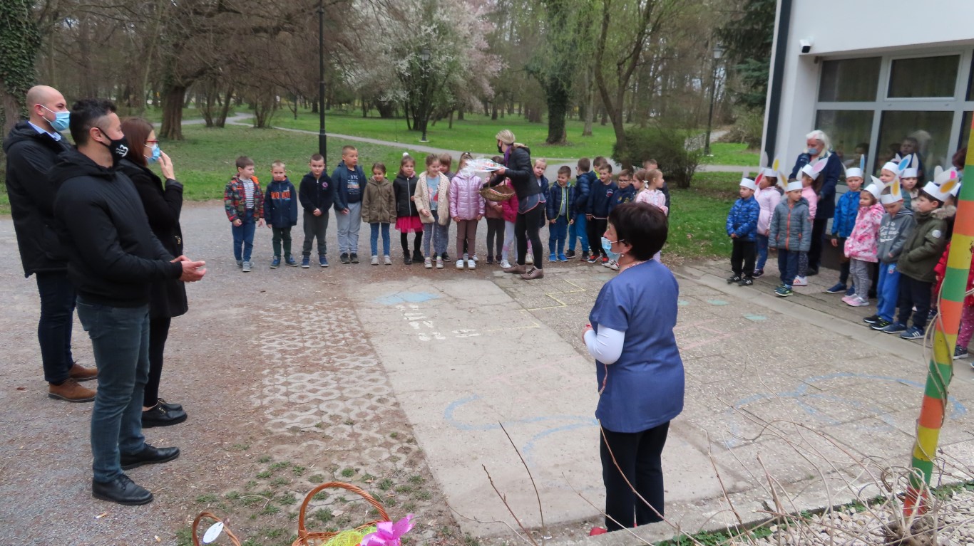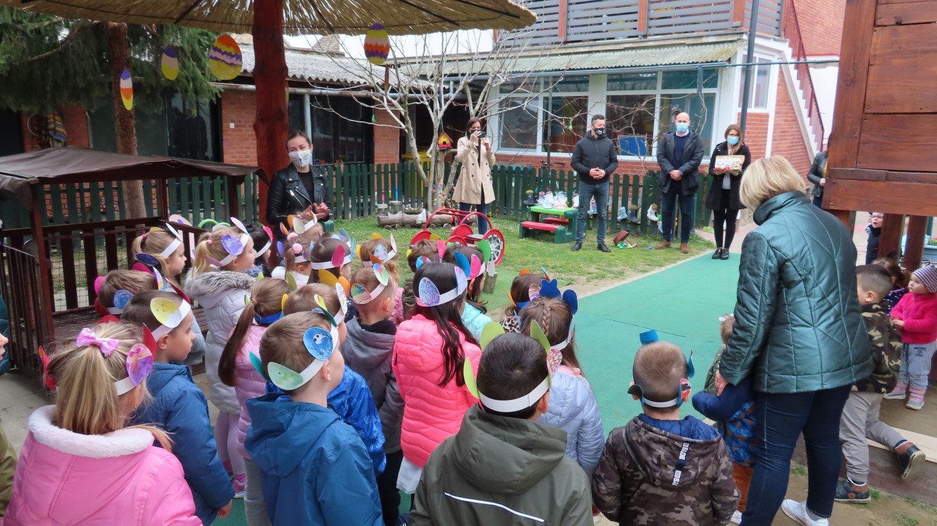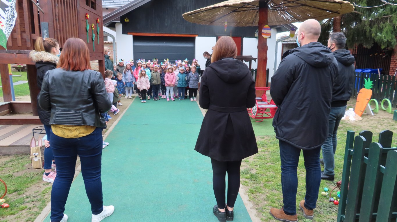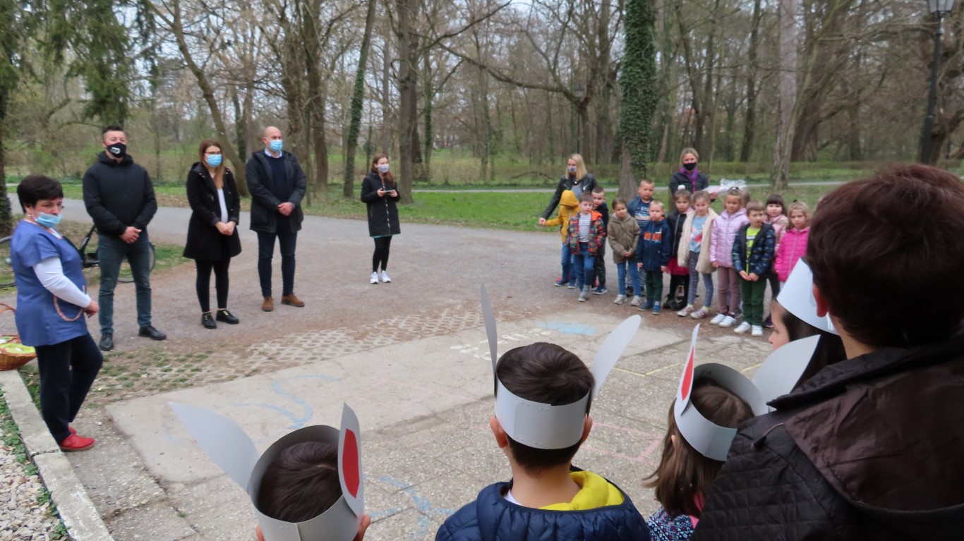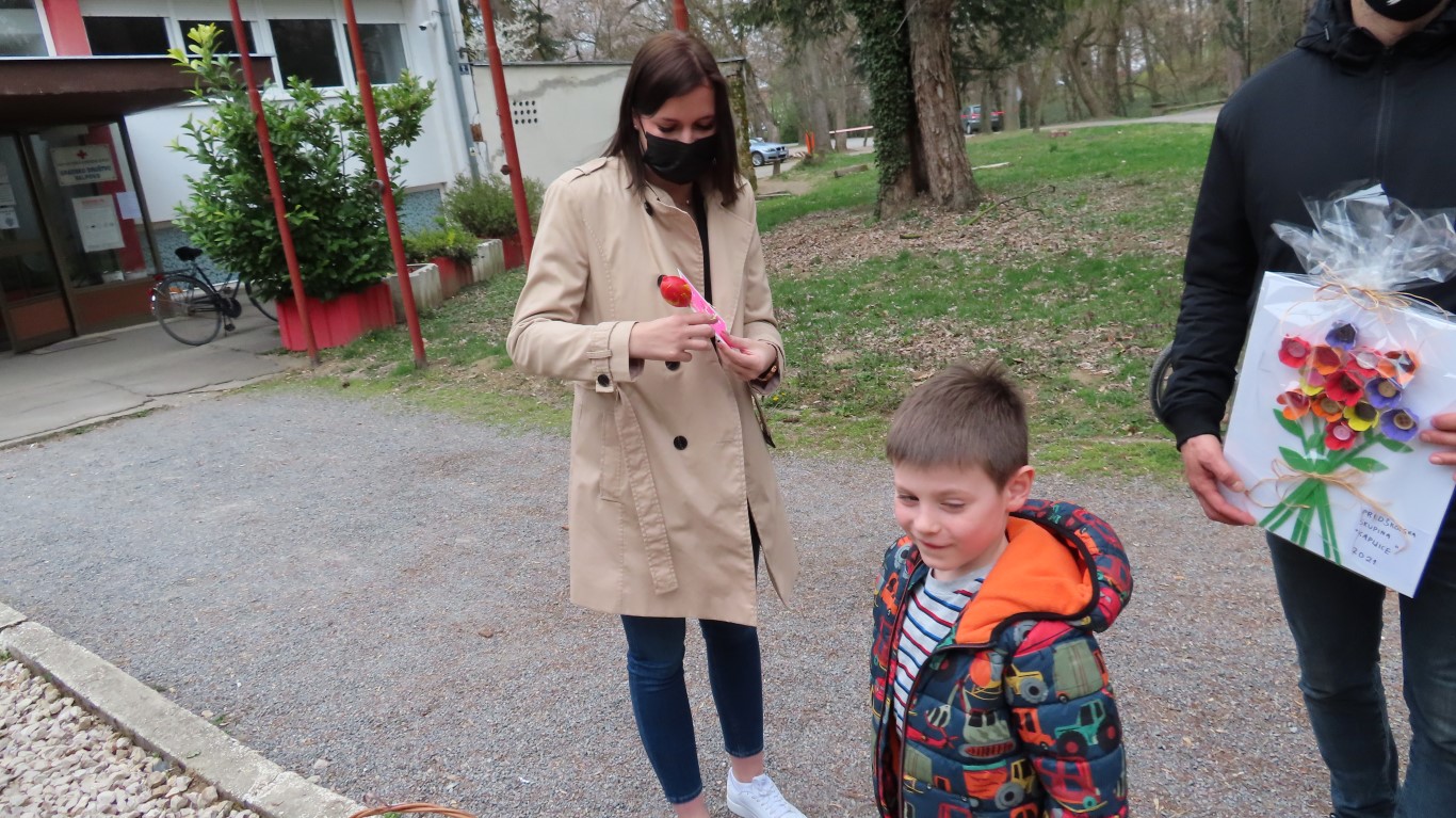 U sasvim izmijenjenim okolnostima, zbog provođenja protuepidemijskih mjera, gradonačelnika Šutala, njegovu zamjenicu Anu Brajnović i predsjednika Vijeća mjesnog odbora Valpova Marka Barišića u Dječjem vrtiću Moj Bambi dočekali su na otvorenom i uz prigodne pjesmice zahvalili na simboličnim darovima - čokoladnim jajima.