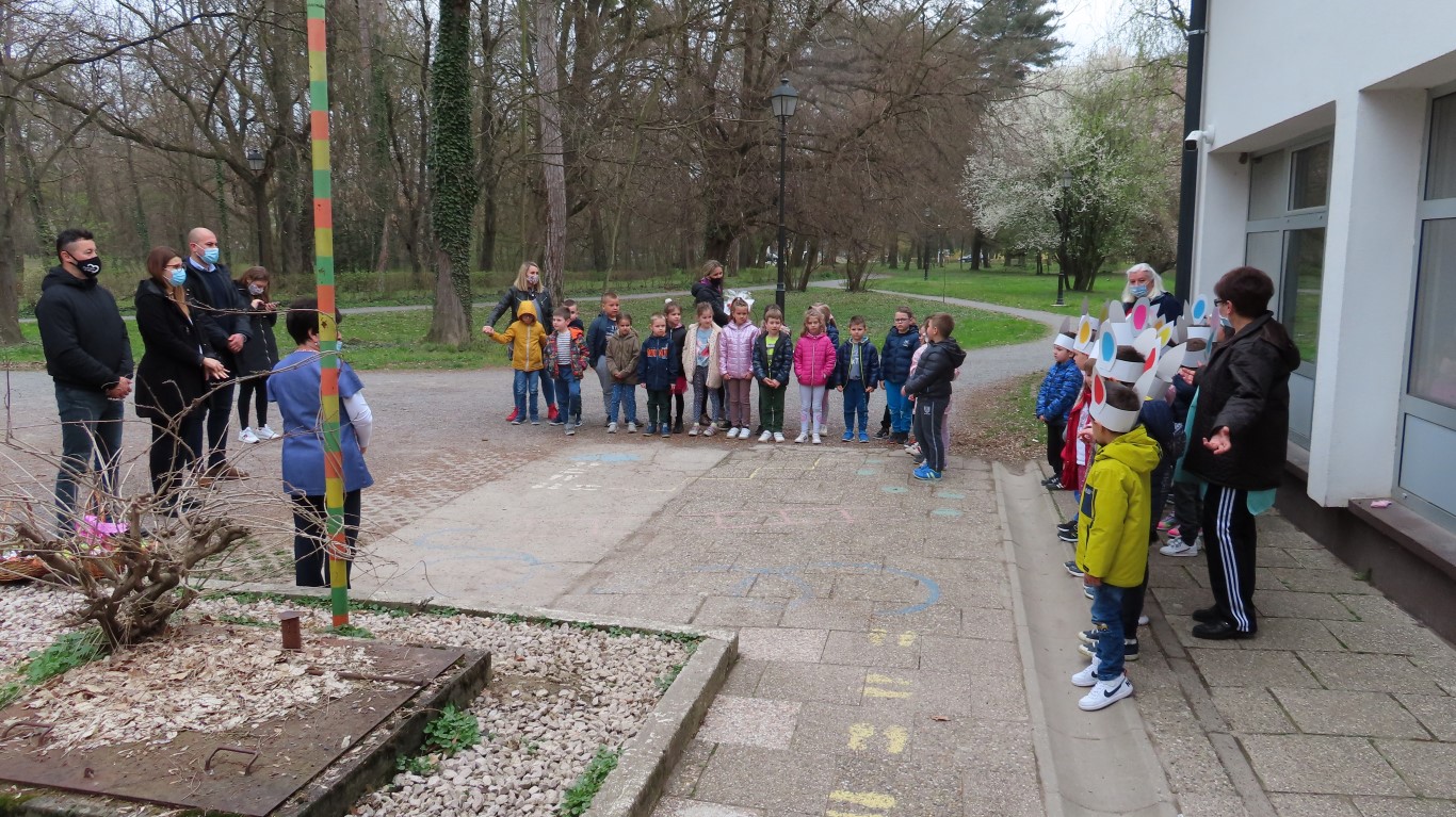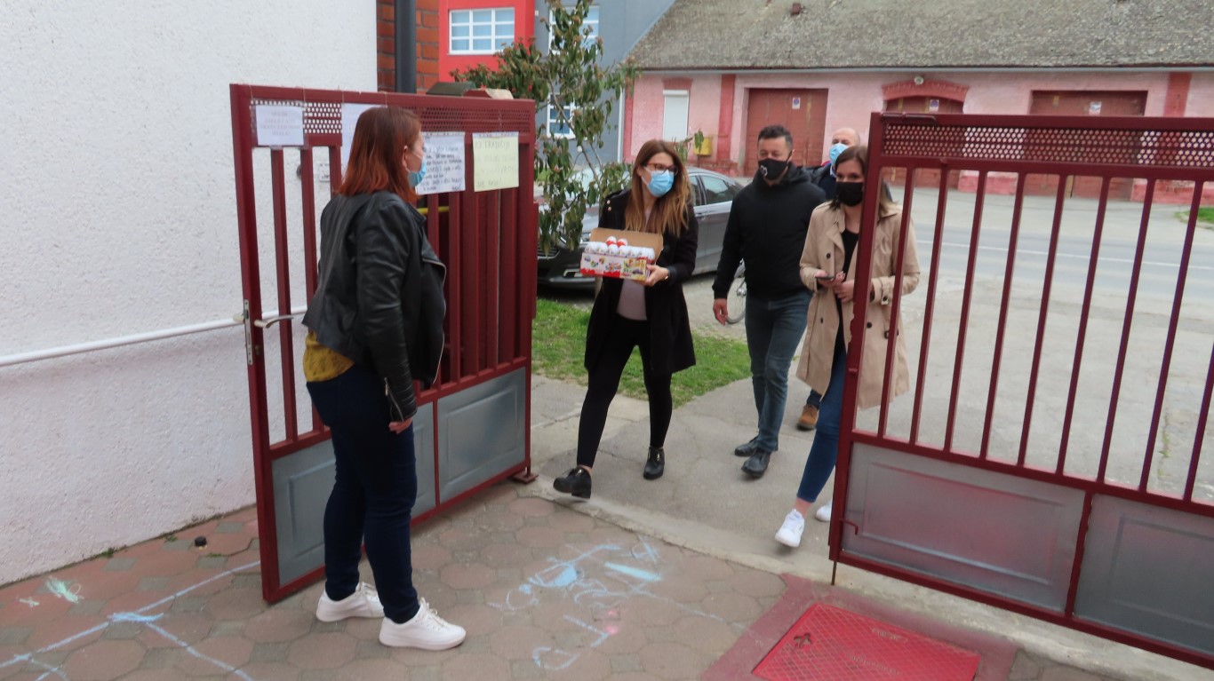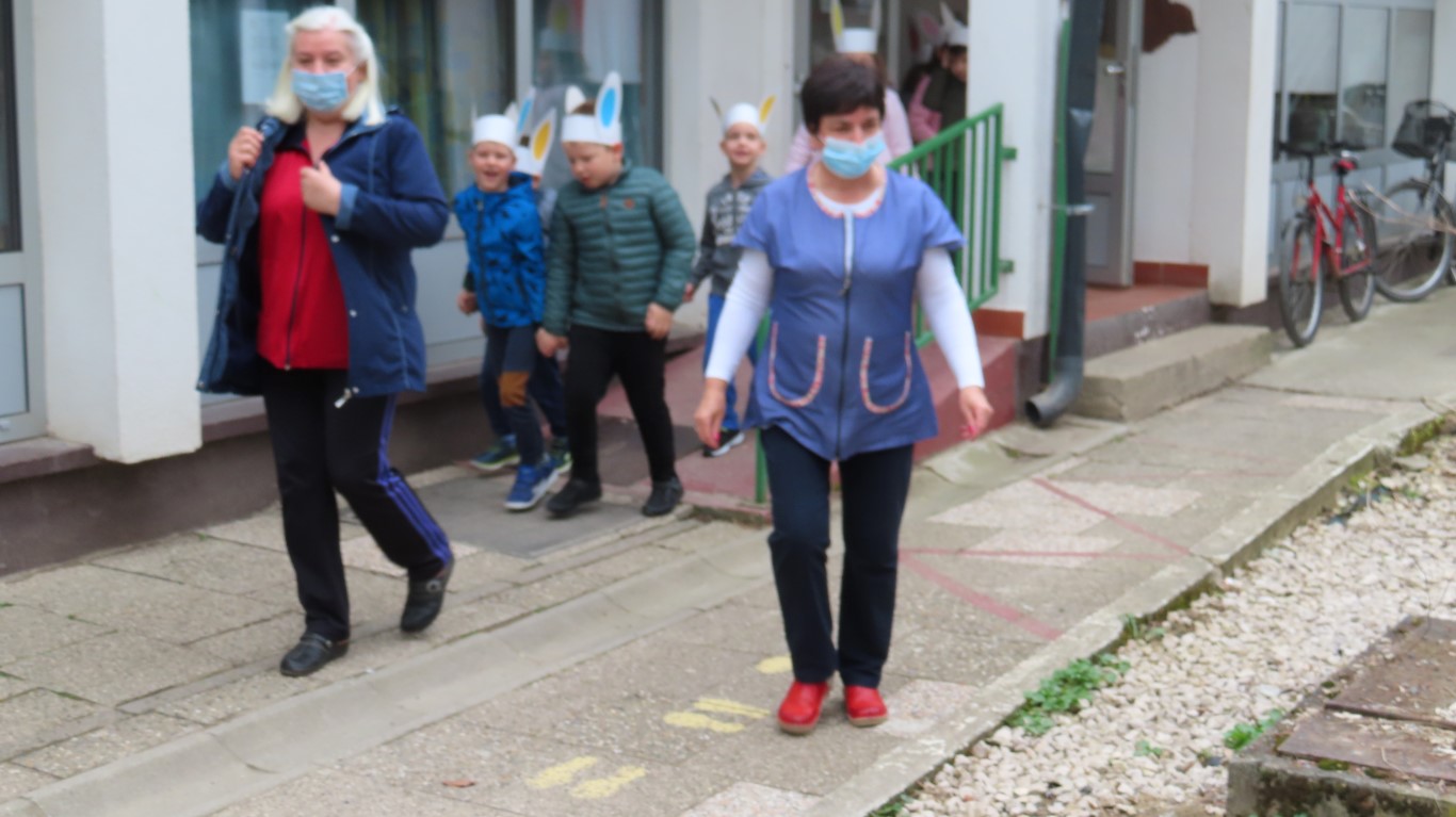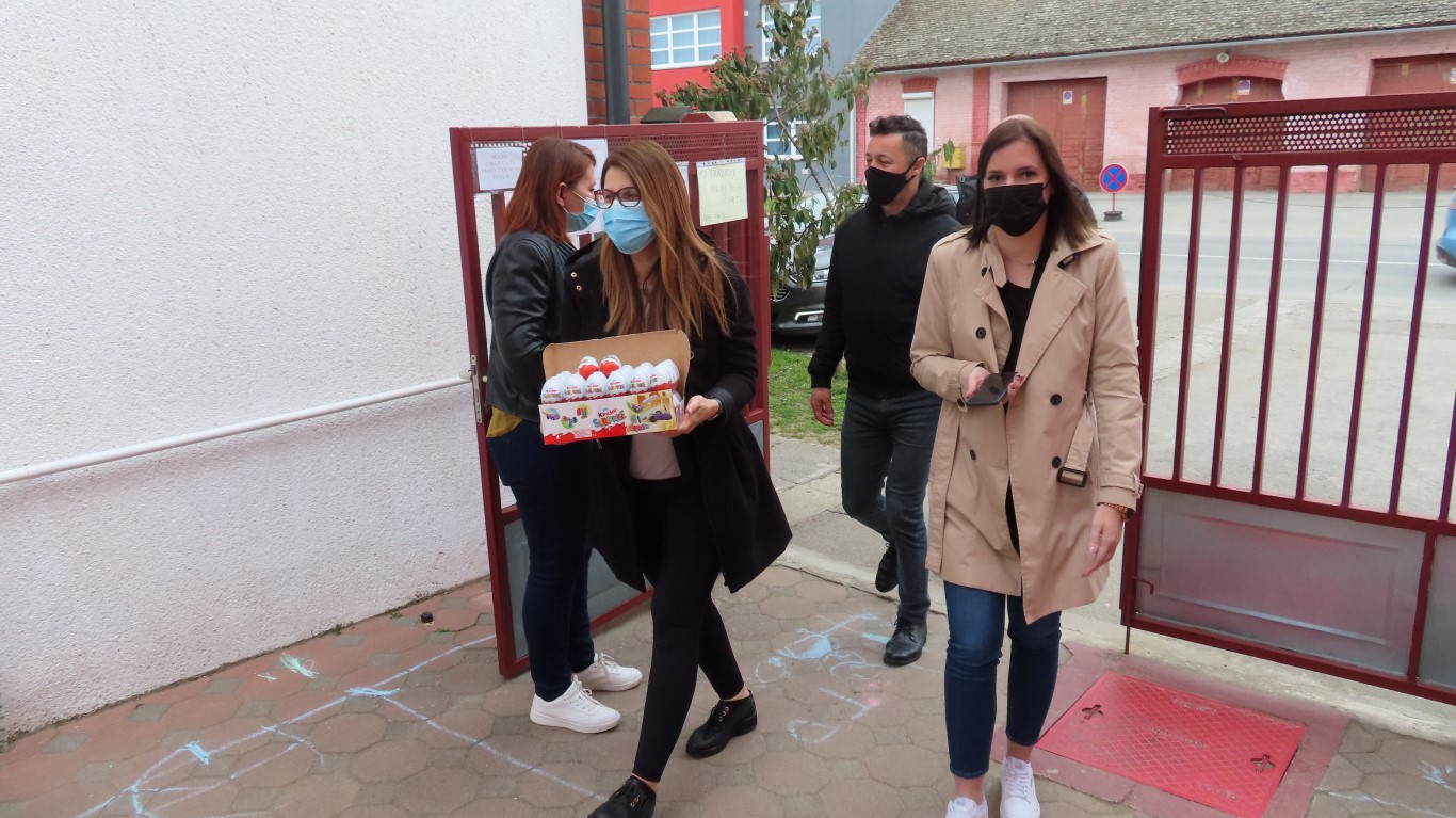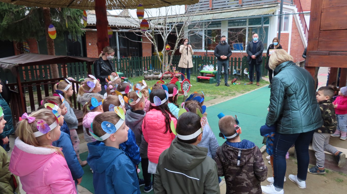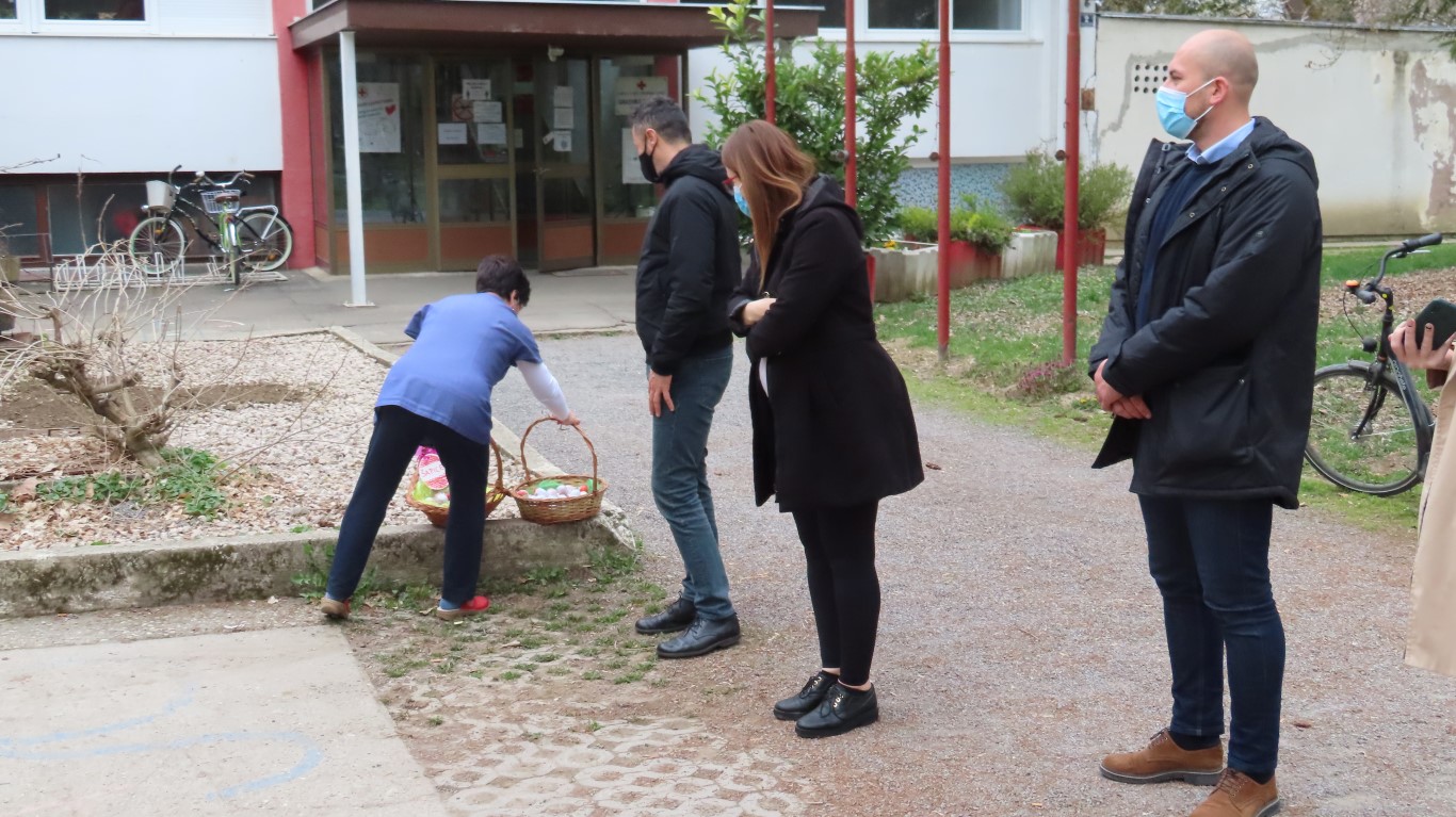 U sasvim izmijenjenim okolnostima, zbog provođenja protuepidemijskih mjera, gradonačelnika Šutala, njegovu zamjenicu Anu Brajnović i predsjednika Vijeća mjesnog odbora Valpova Marka Barišića u Dječjem vrtiću Moj Bambi dočekali su na otvorenom i uz prigodne pjesmice zahvalili na simboličnim darovima - čokoladnim jajima.
