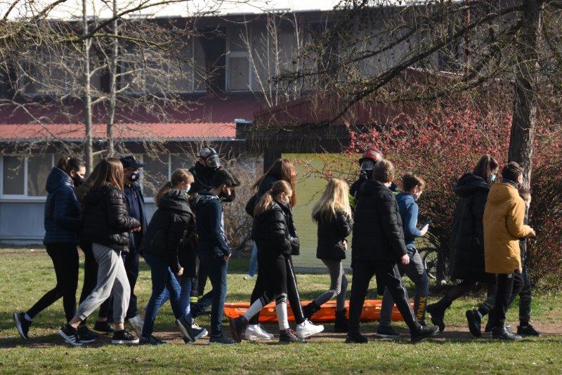Nakon pronalaska učenika, vatrogasci ga dovode van objekta, gdje ga predaju ekipi Prve pomoći Osnovne škole koji obavljaju radnje prve pomoći, a potom po potrebi ih predaju službi Hitne pomoći.