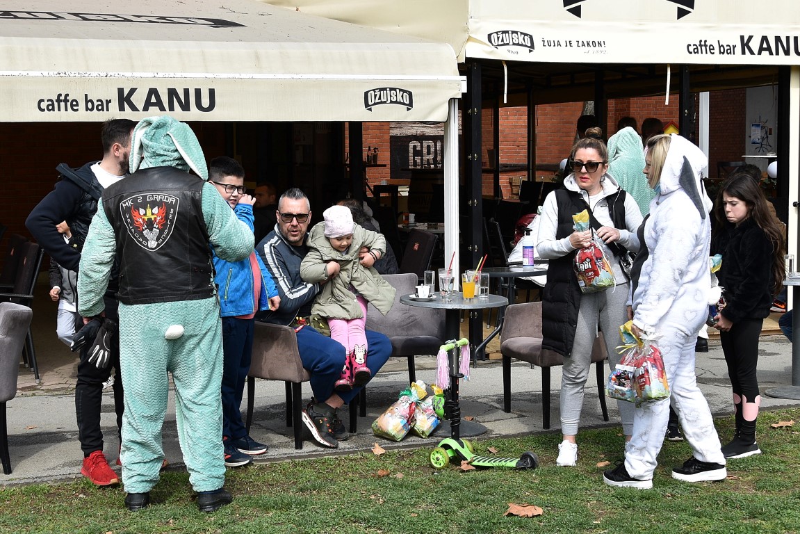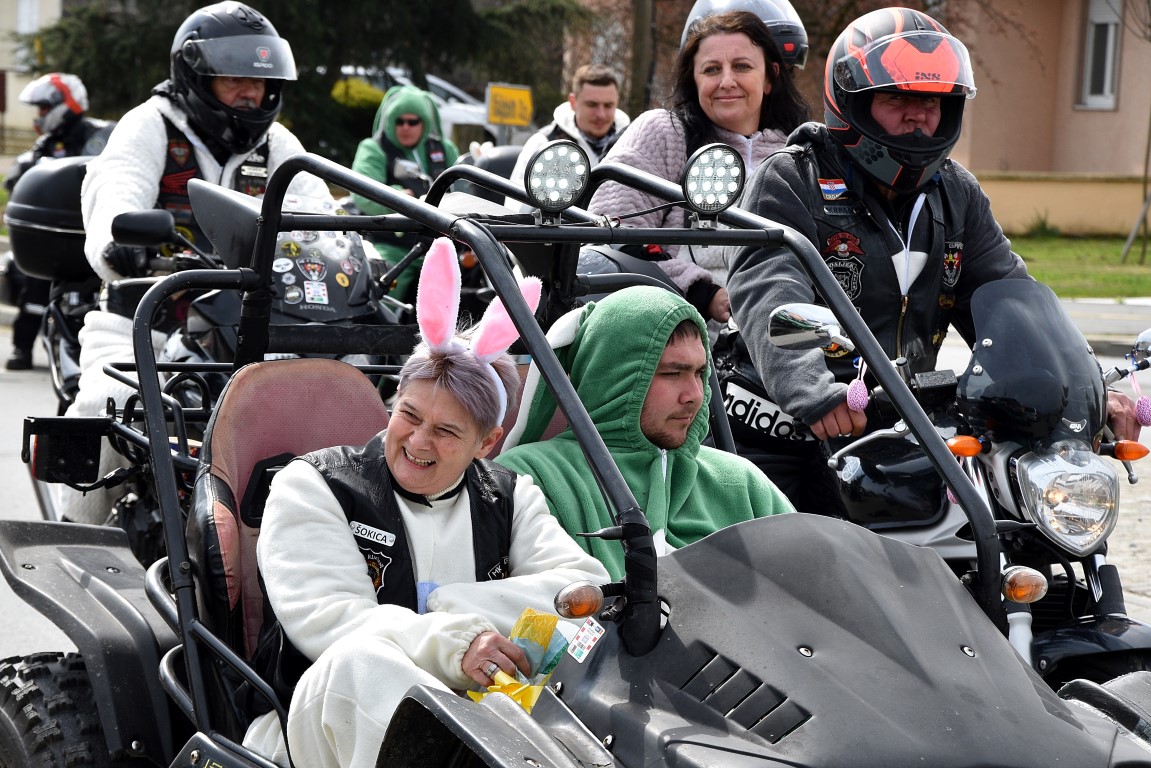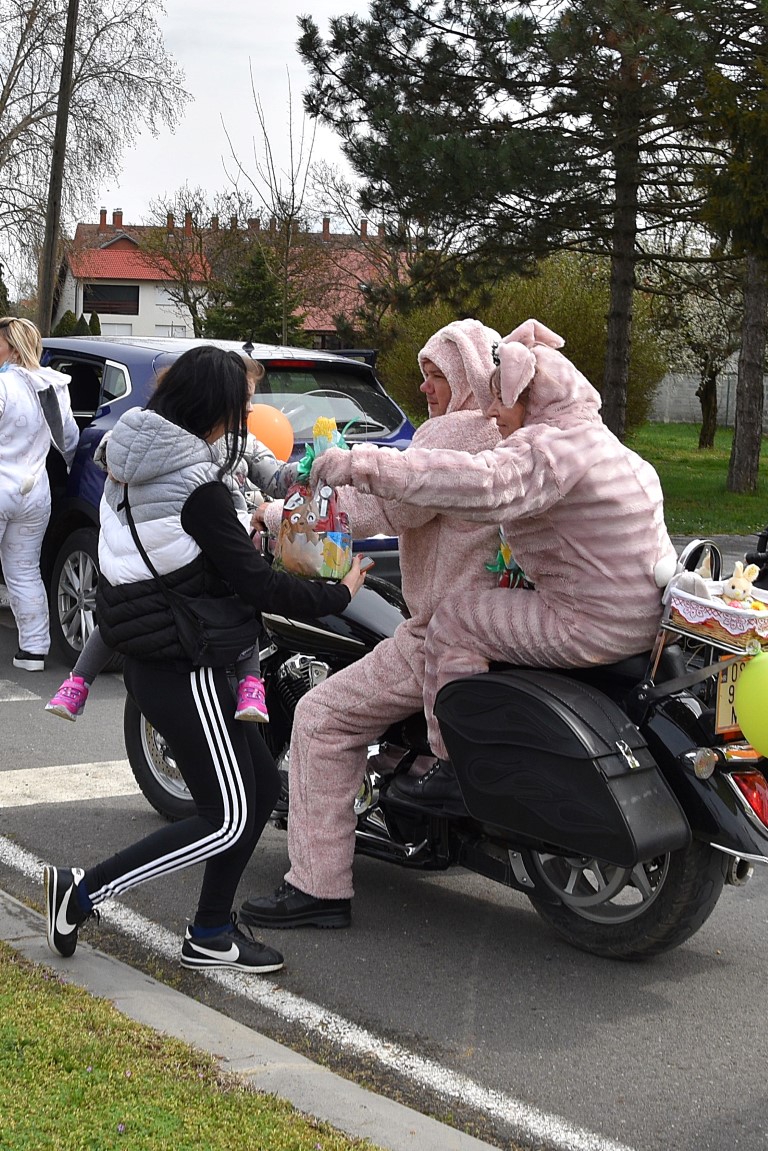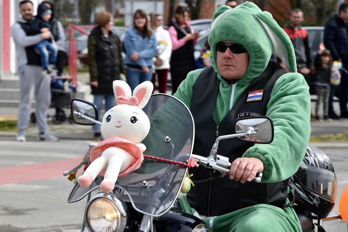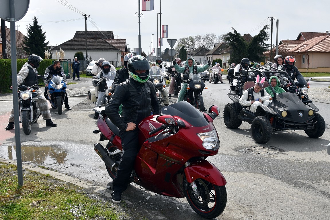 Nakon potrage za pisanicama, Turistička zajednica grada Belišća u suradnji s Gradom Belišćem i Moto klubom 2 grada Valpovo – Belišće organizirala je dolazak Moto zečeva na Veliku subotu, 3. travnja. Kolona Motozečeva je ulicama Belišća i Bistrinaca, a djecu koja su ih čekala podijelili su slatke paketiće. Posebno je zanimljivo bilo u središtu Belišća, gdje su se Motozečevi zaustavili kako bi se nakratko okrijepili, jer je i tih nekoliko minuta bilo dovoljno da se oko prigodno ukrašenih motocikala okupi znatiželjno mnoštvo, ne samo mali, nego i onih većih Belišćana.