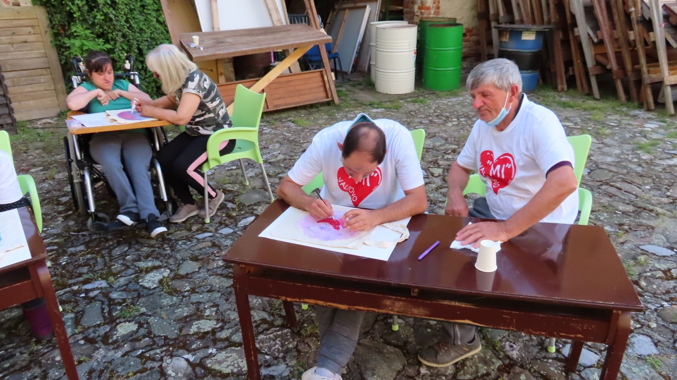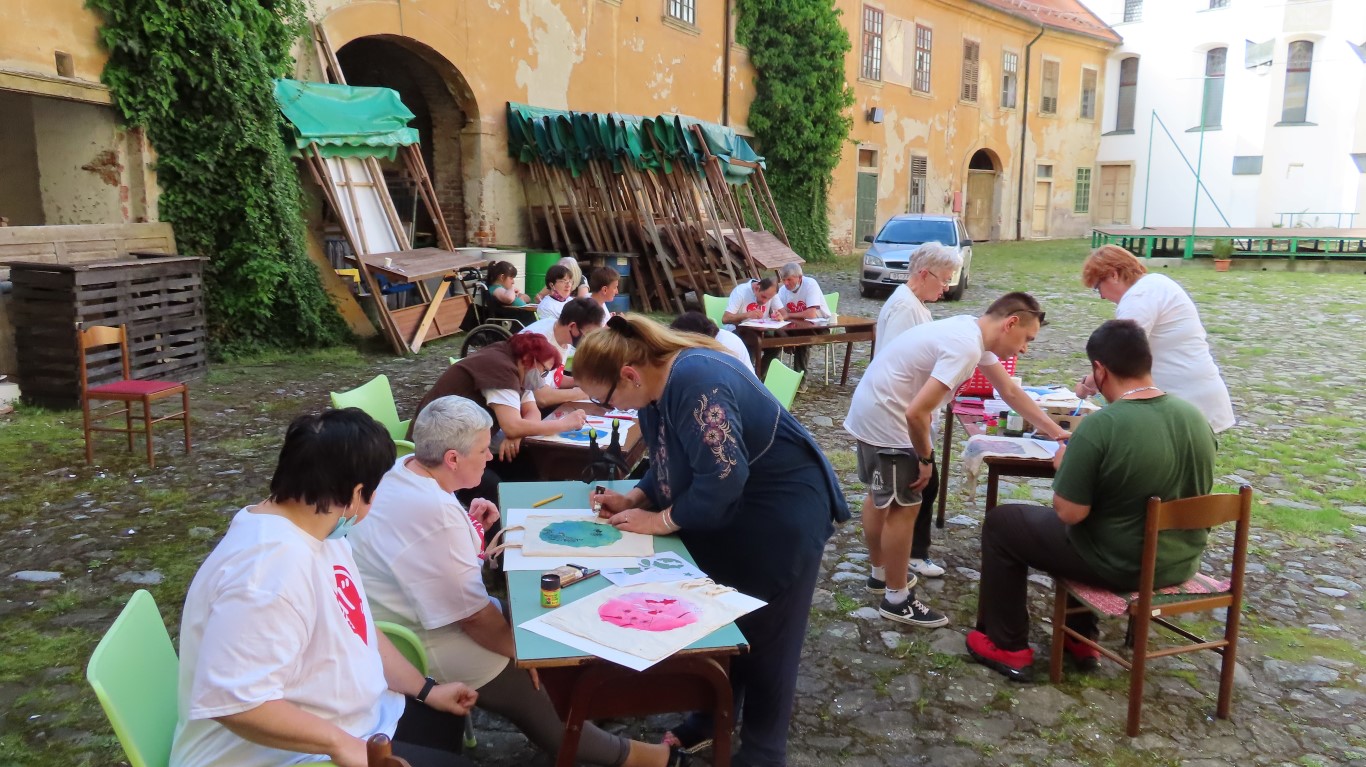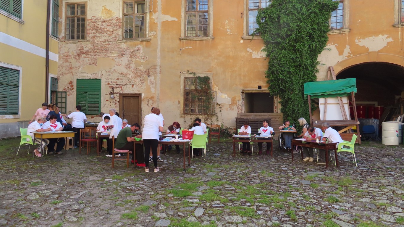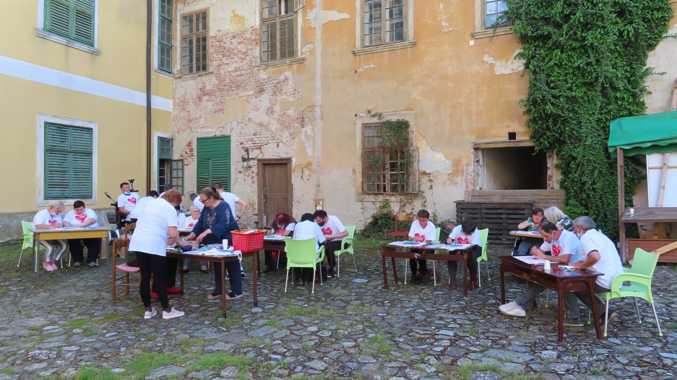 U dvorištu dvorca okupili su se kako bi nastavili s ciklusom radionica pod vodstvom slikarice Slobodanke Griva Šokac.