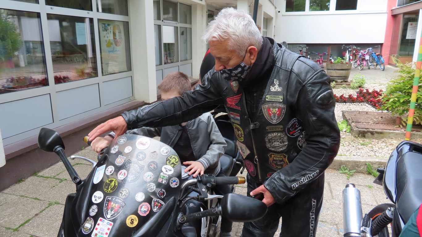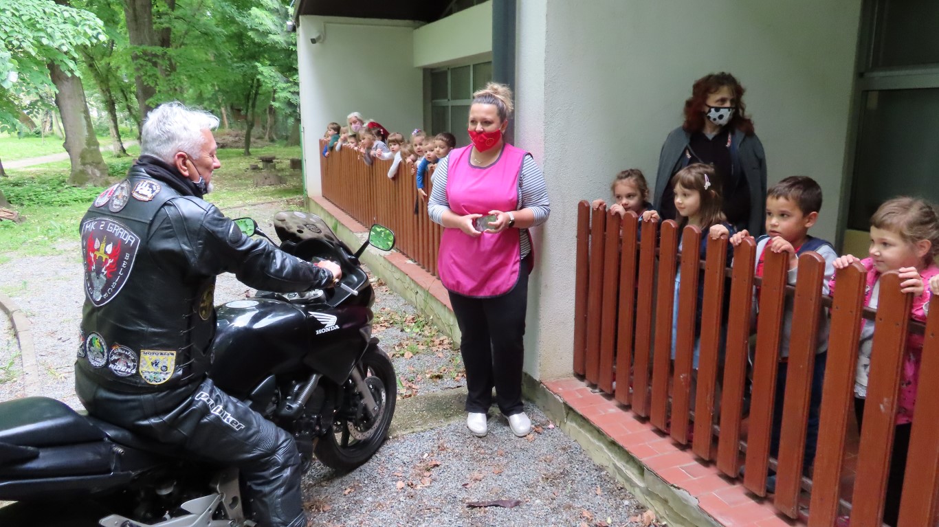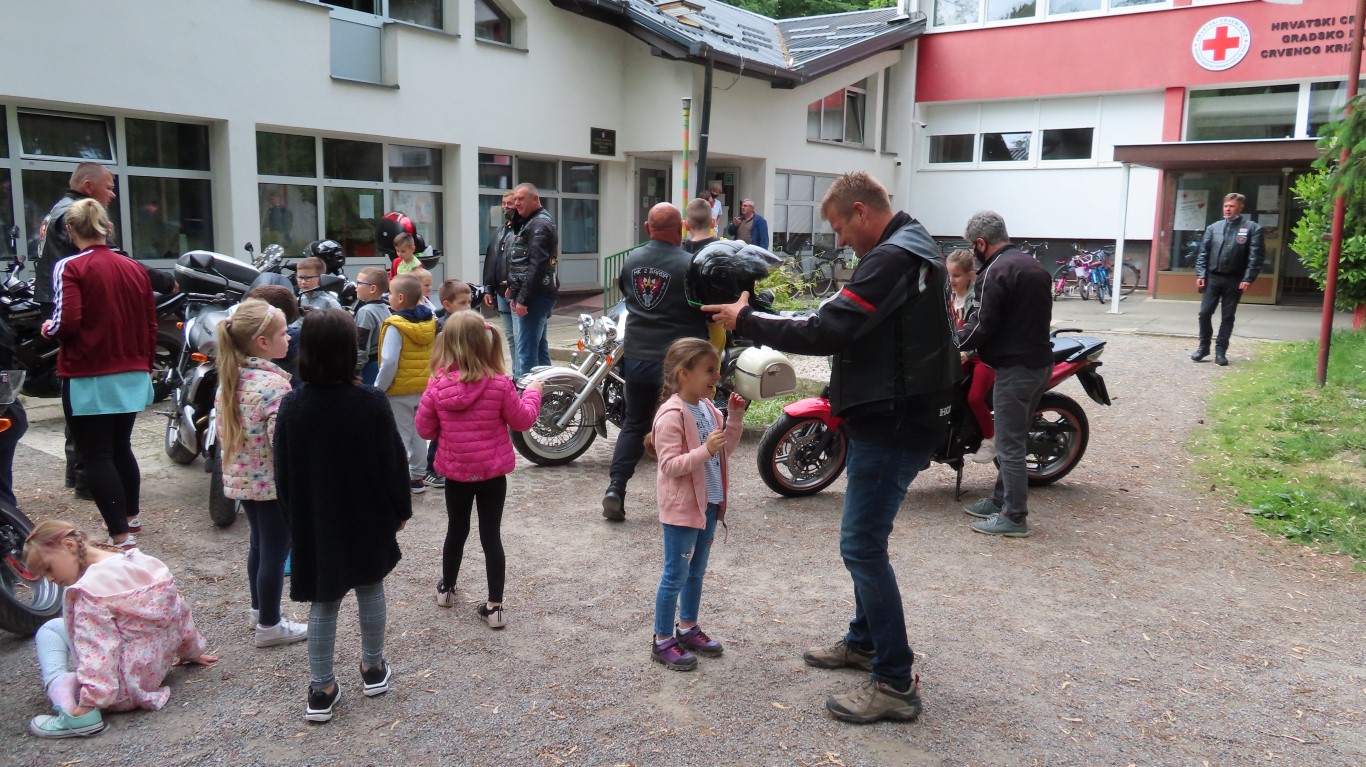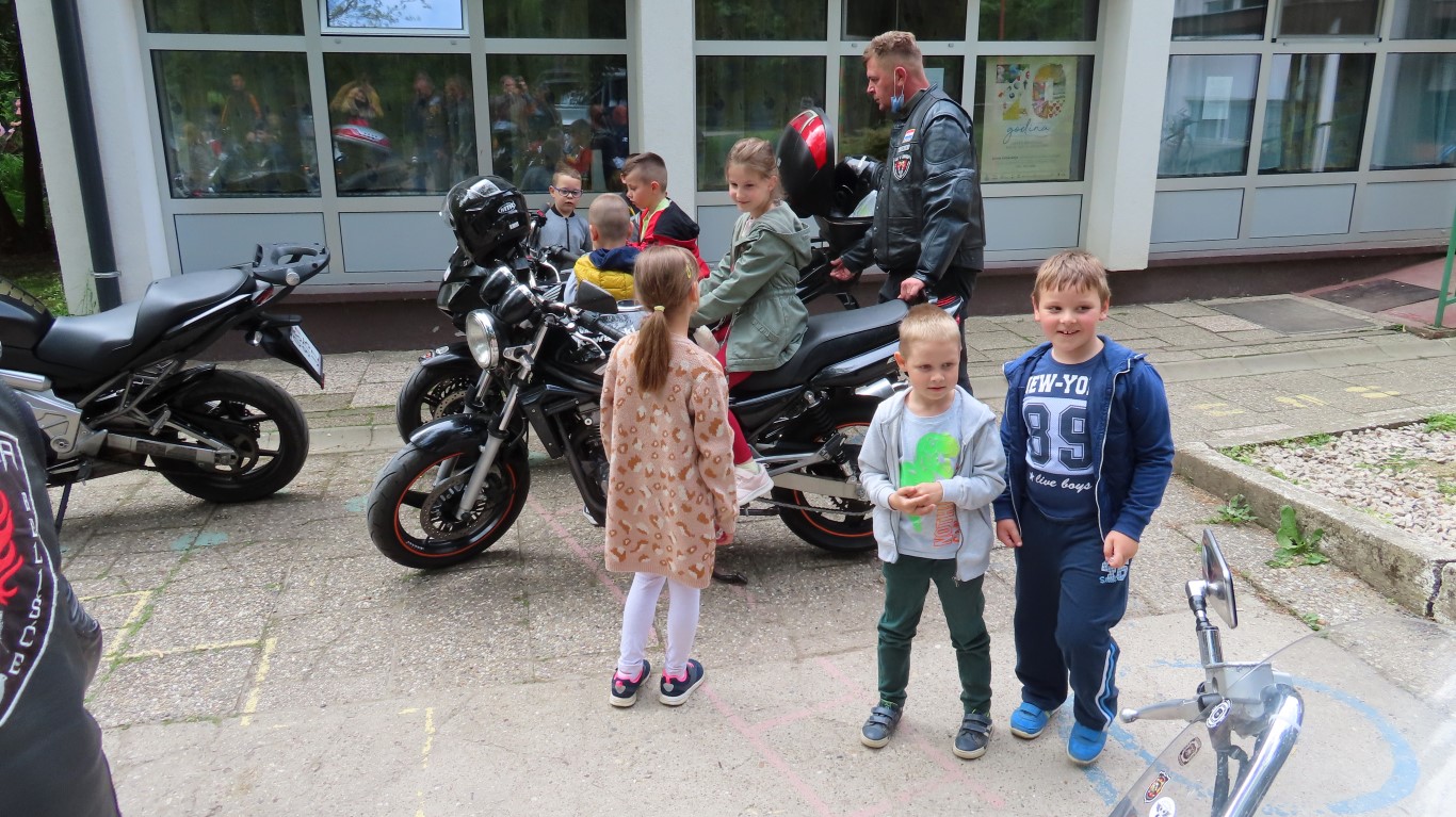 Predvođeni Dariom Partićem, predsjednikom Moto kluba 2 grada, nekolicina od četrdesetak članova izazvali su veliku pozornost mališana i ovu prigodu iskoristili da ih poduče o dijelovima motora i motorističke opreme i osnovama ponašanja u prometu.