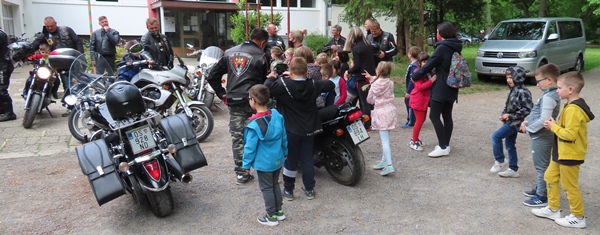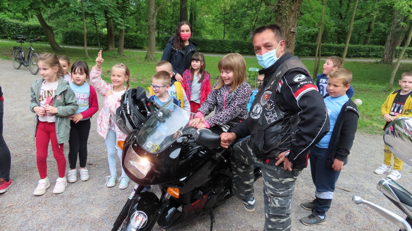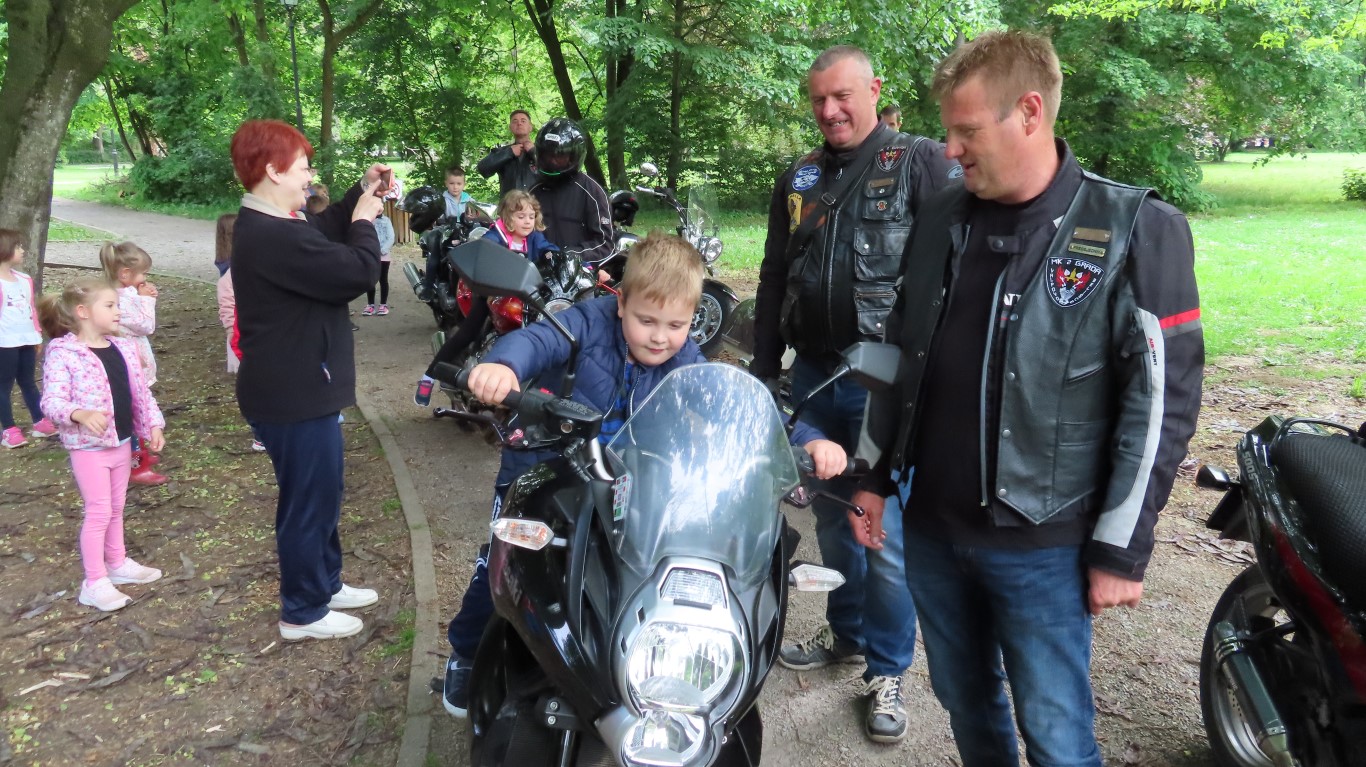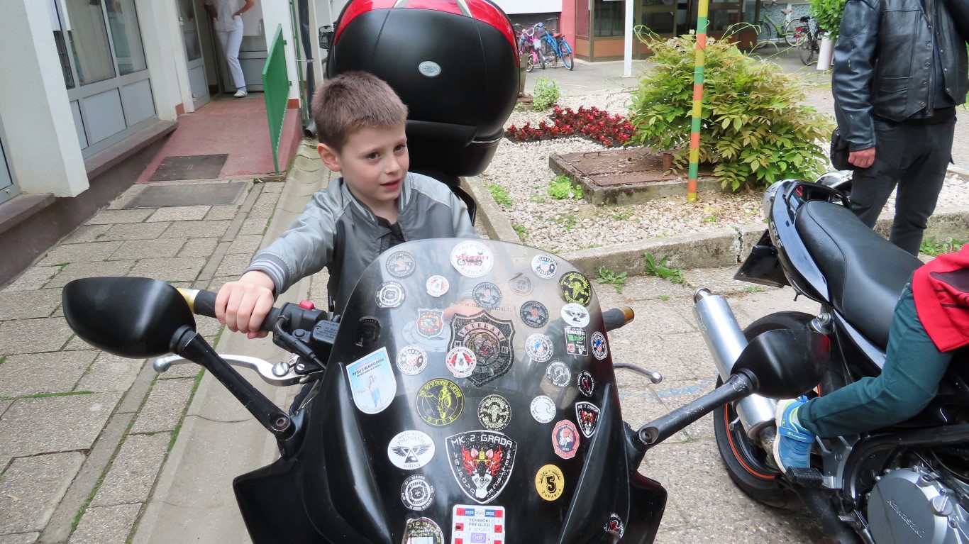 Predvođeni Dariom Partićem, predsjednikom Moto kluba 2 grada, nekolicina od četrdesetak članova izazvali su veliku pozornost mališana i ovu prigodu iskoristili da ih poduče o dijelovima motora i motorističke opreme i osnovama ponašanja u prometu.