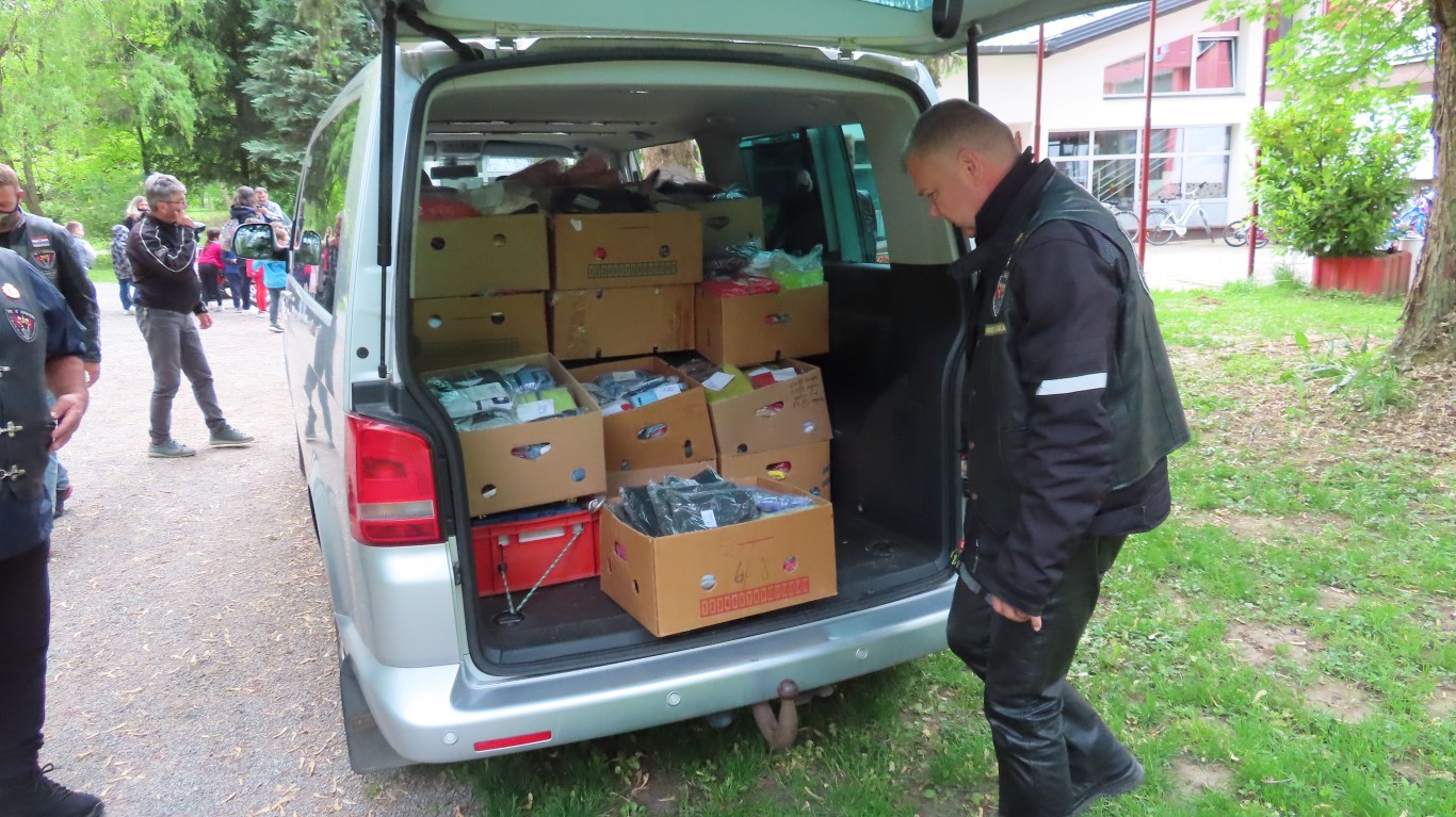 Tom su prilikom mališanima, polaznicima ovog Dječjeg vrtića, darivali dio odjevnih predmeta što je Moto klubu donirala tvrtka Galatea iz Belišća.