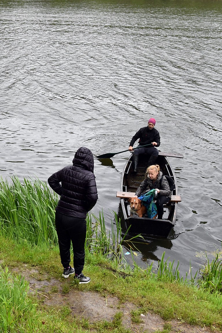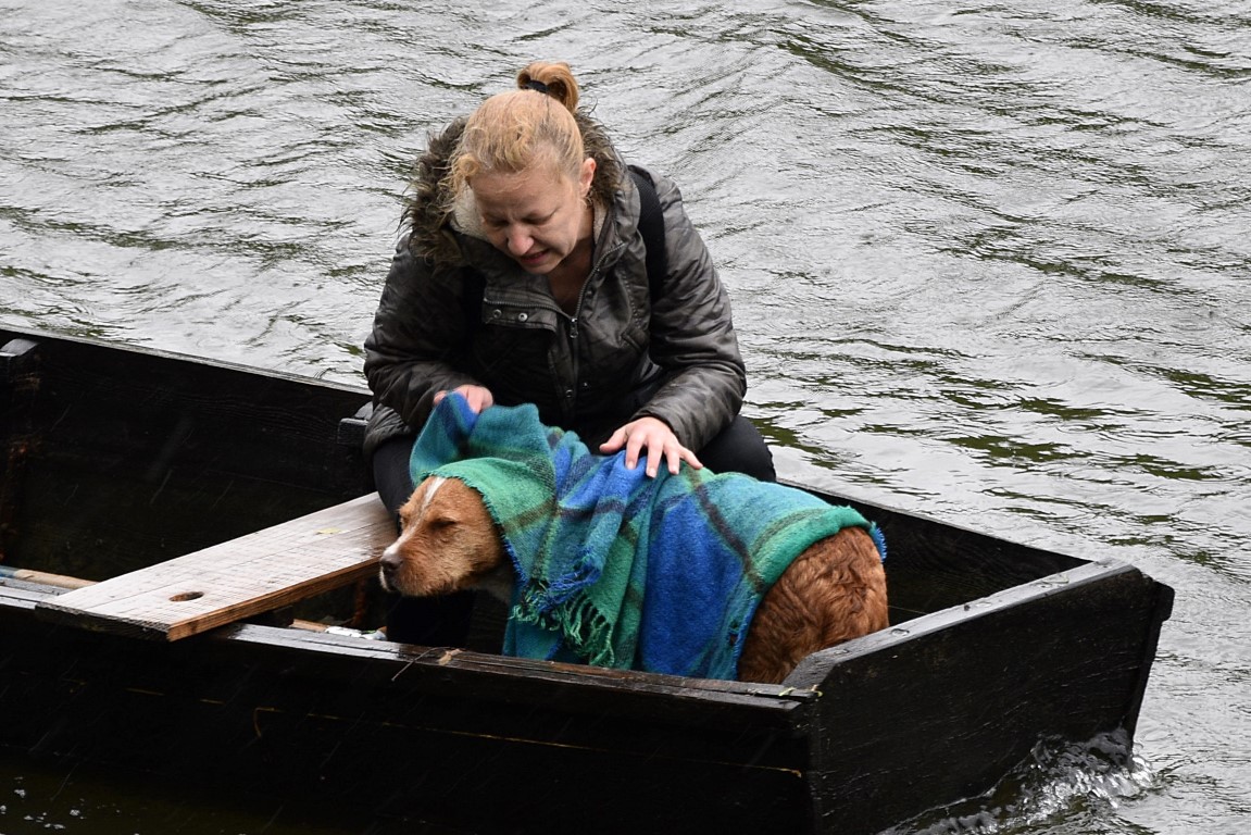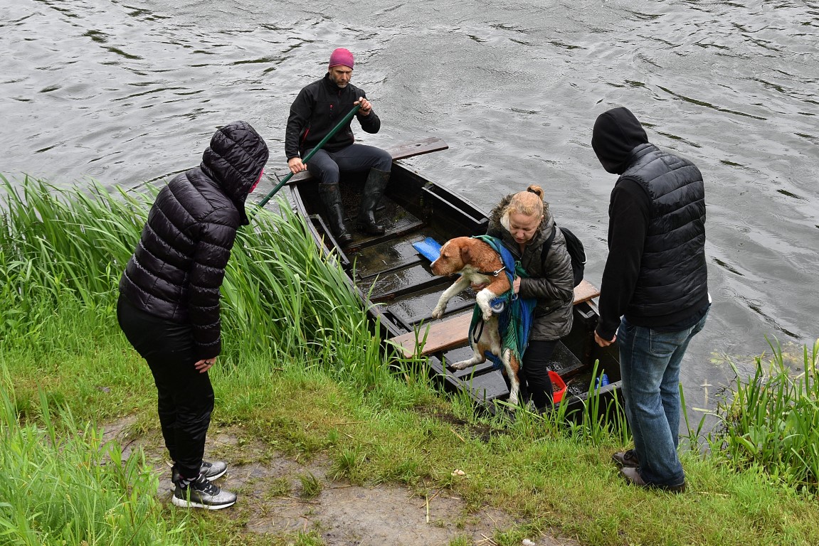 S Danijelom Prelčec u čamcu, Tomislav Radović preveslao je 300-tinjak metara kako bi došao do druge obale gdje je iznenada iz šume pas iskočio pred njih. Gladan, izmučen, mokar i nogu otečenih od vode u kojoj je dugo stajao, mješanac staforda i terijera star oko godinu dana brzo je prišao svojim spasiocima koji su mu kao mamac ponudili hranu te ga smjestili u čamac i po kiši, jakom vjetru i vrlo nepovoljnim vremenskim prilikama prevezli se na drugu stranu, sretni što se priča brzo završila a da nisu morali tražiti životinju i kretati se po minski sumnjivom području.