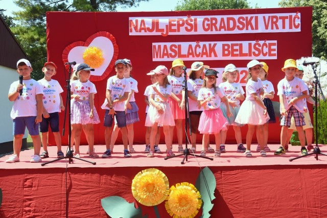 Svečanost u Maslačku, najljepšem gradskom vrtiću u Hrvatskoj, počela je himnom vrtića, koju su pjevali polaznici najstarije vrtićke skupine loptice, a potom su uz prigodnu koreografiju uslijedile dvije skladbe o vrtiću, koje je napisao naš Belišćanin Antun Tonika Bučanac.