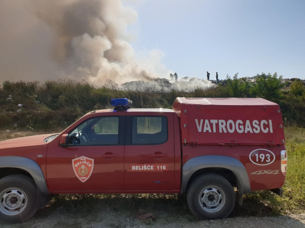 Na mjesto požara, od kuda se odmah počeo širiti gusti crni dim, u kratkom vremenu su stigli vatrogasci DVD Belišća, a nedugo iza njih i sva raspoloživa vozila i cisterne Dobrovoljnih vatrogasnih društava prigradskih naselja. Požar nije ugrožavao objekte i instalacije na odlagalištu, niti one u blizini.