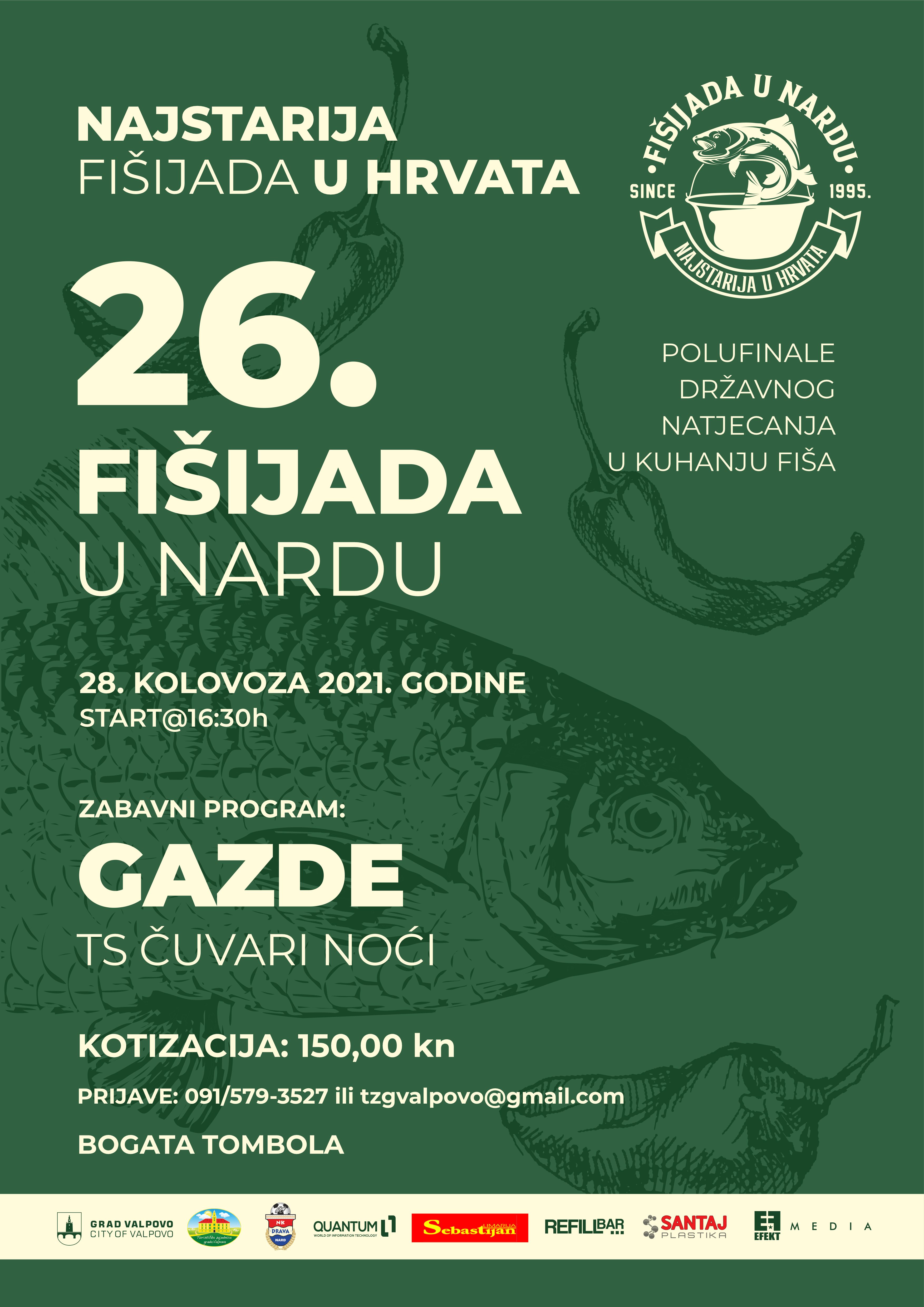 VALPOVO/NARD U subotu, 28. kolovoza 2021. godine, TZ Grada Valpova u suradnji s Gradom Valpovom, Turističkom zajednicom Baranje i NK „Drava“ Nard, organizira 26. po redu Fišijadu u Nardu.