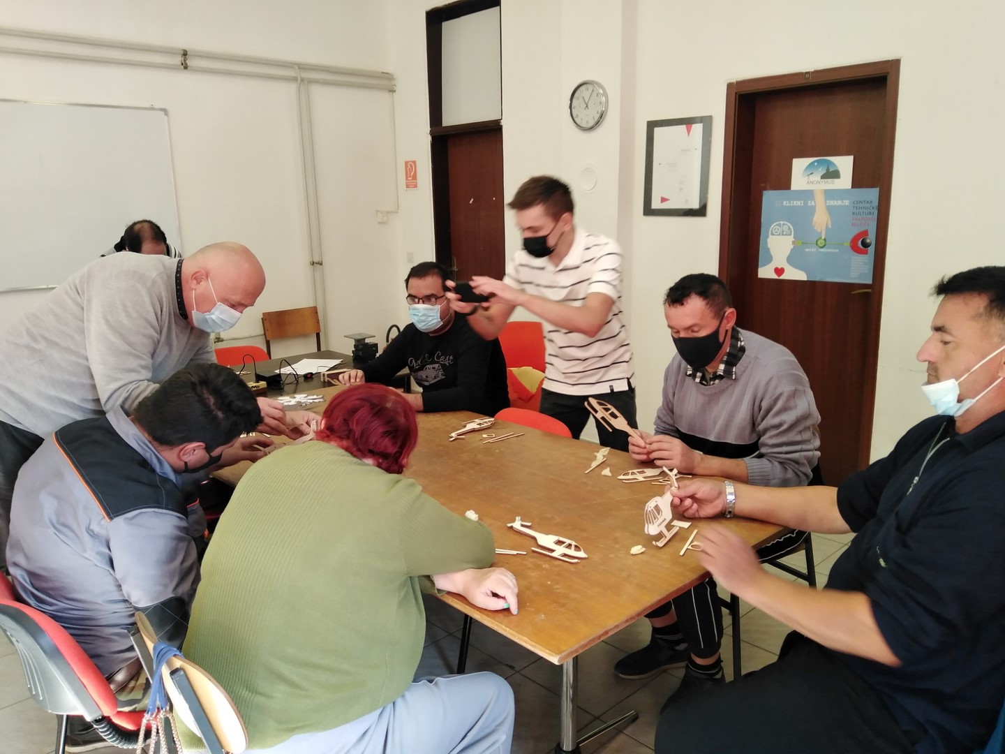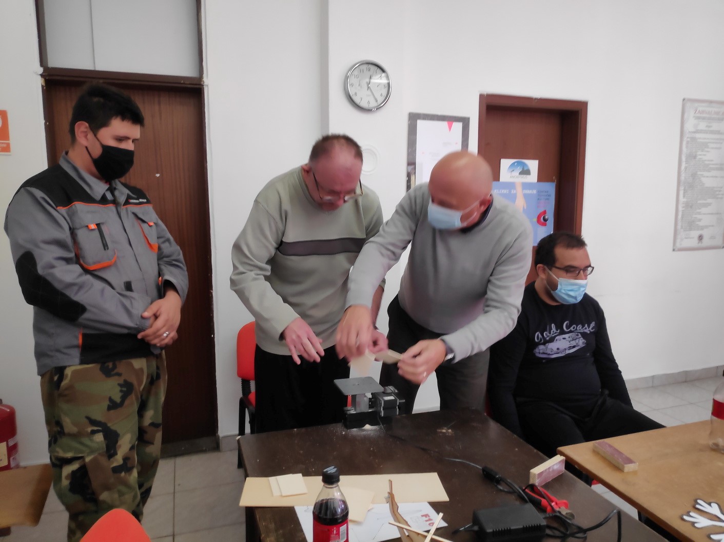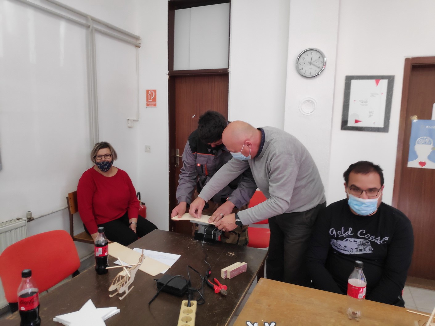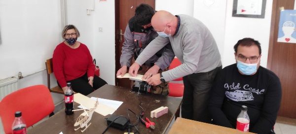 Aktivnost je započela spajanjem modela helikoptera, koji je svaki polaznik mogao ponijeti kući. Nakon toga pokušali su na strojevima za rezanje stiropora izrezati ukrase za Božić, a što im je izazvalo veliku radost. Zadnja aktivnost bila je piljenje šperploče na Unimat strojevima. Rad na strojevima demonstrirali su Josip Marković i Nikola Čelina koji su kao sudionici „Javnih radova“ u ZTK Valpovo-Belišće, unazad nekoliko godina, imali priliku steći iskustvo i sudjelovati na natjecanjima modelarske lige. Svi članovi udruge izrezali su nekoliko jednostavnih oblika na strijevima.